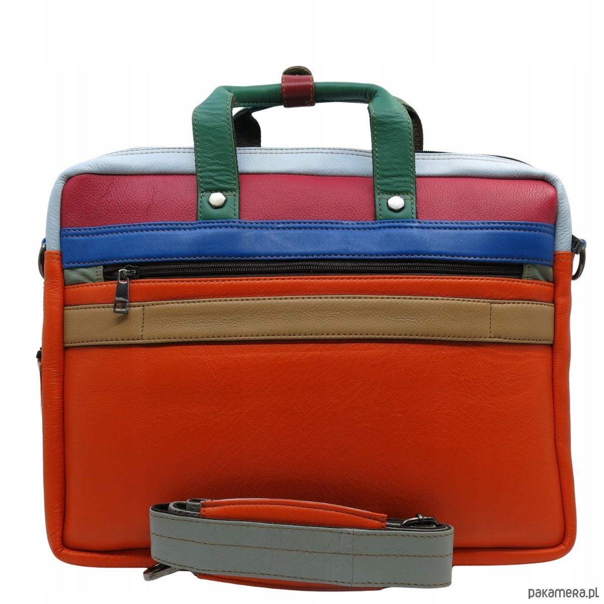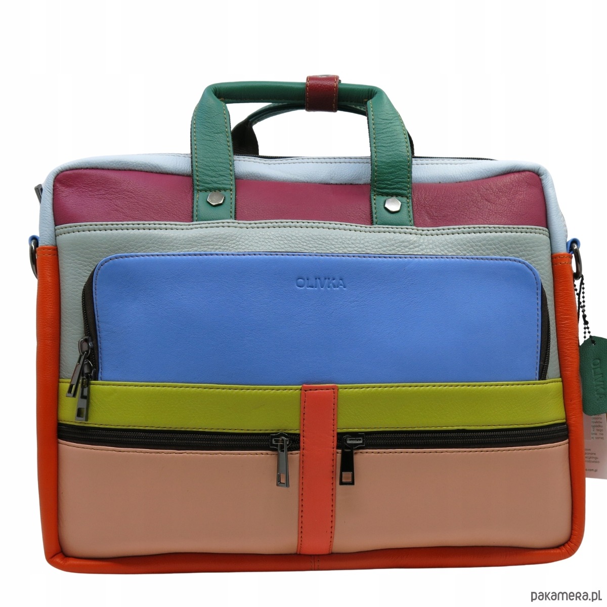 Aktówka torba na laptopa skórzana rączki regulowany pasek kieszenie OLIVKA