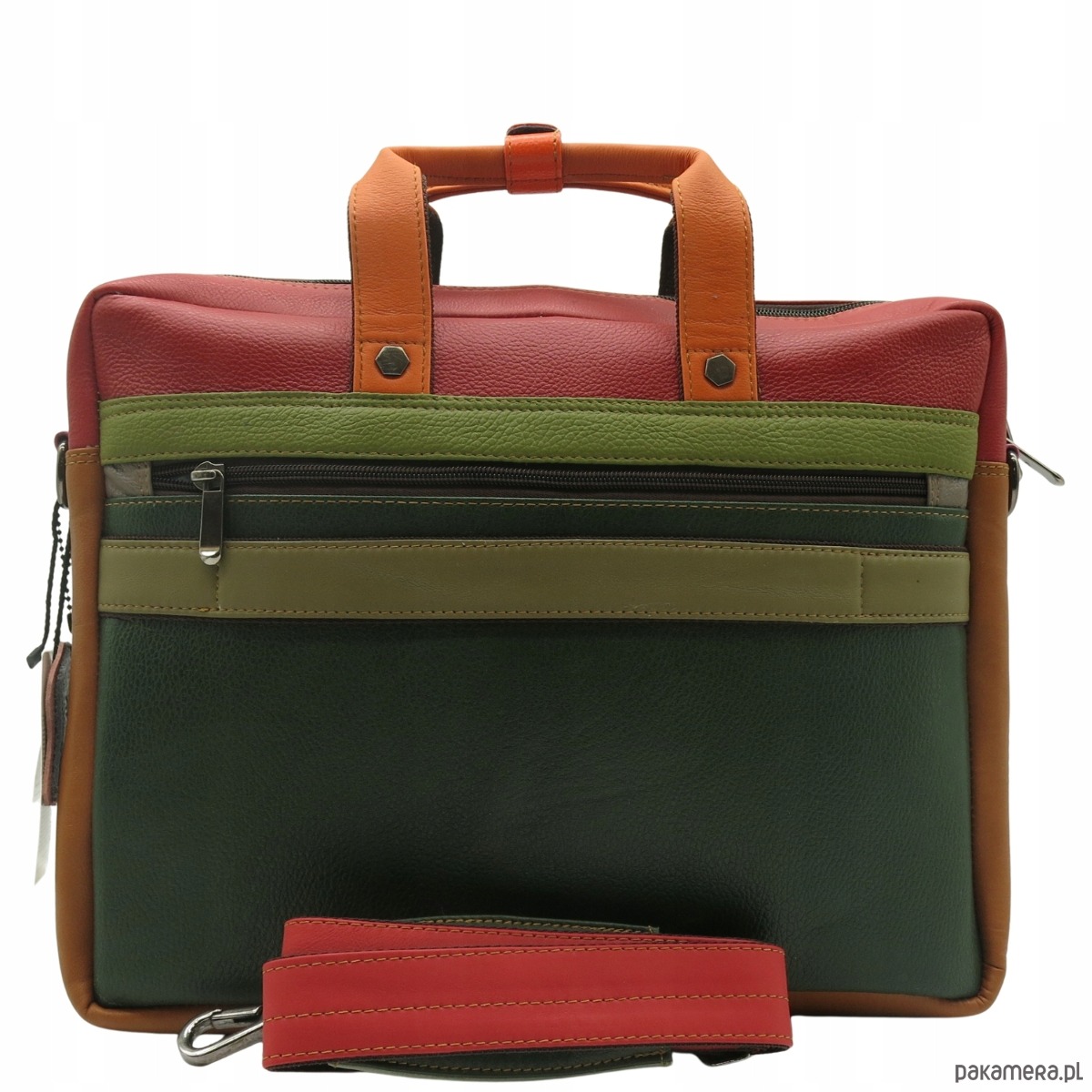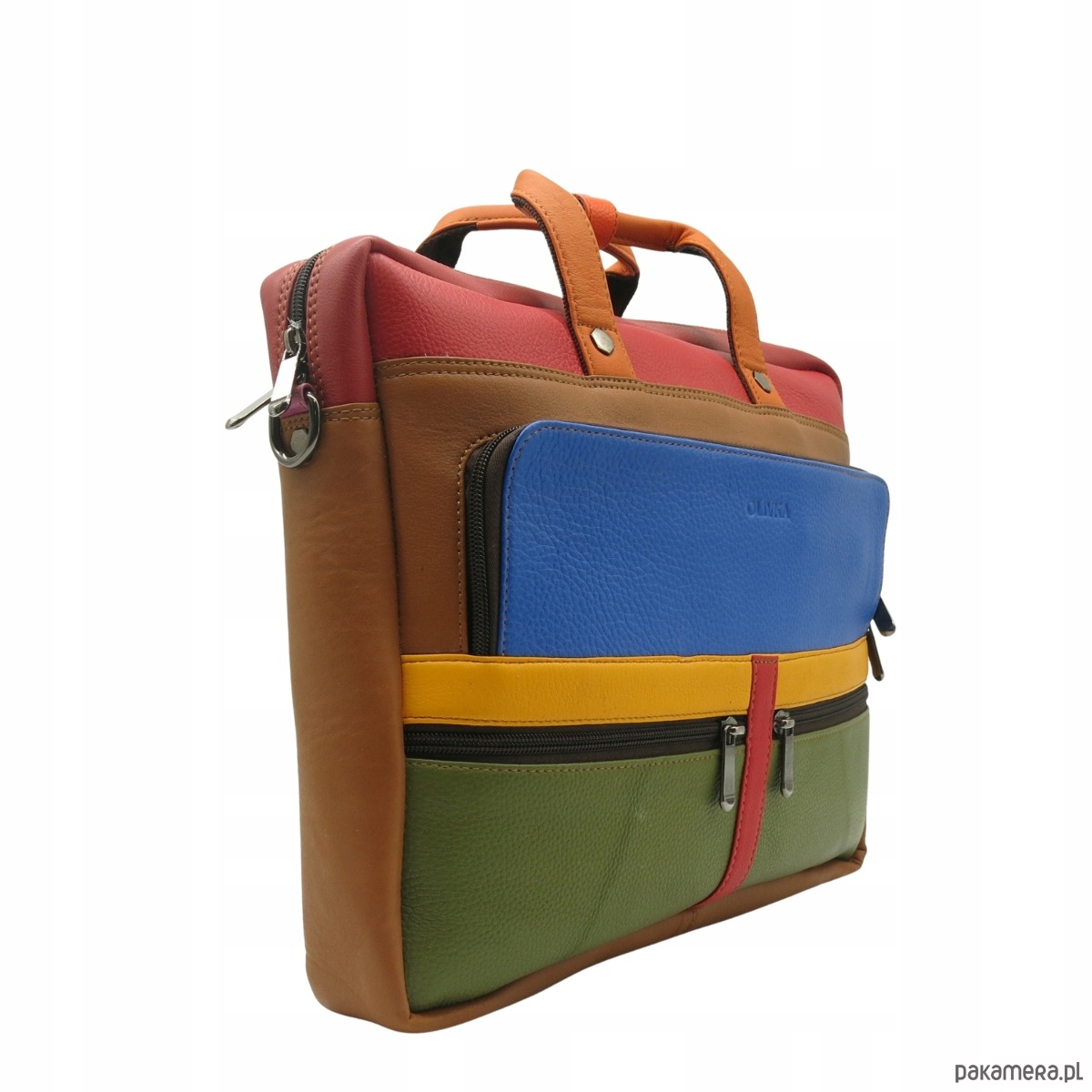 Aktówka torba na laptopa skórzana rączki regulowany pasek kieszenie OLIVKA