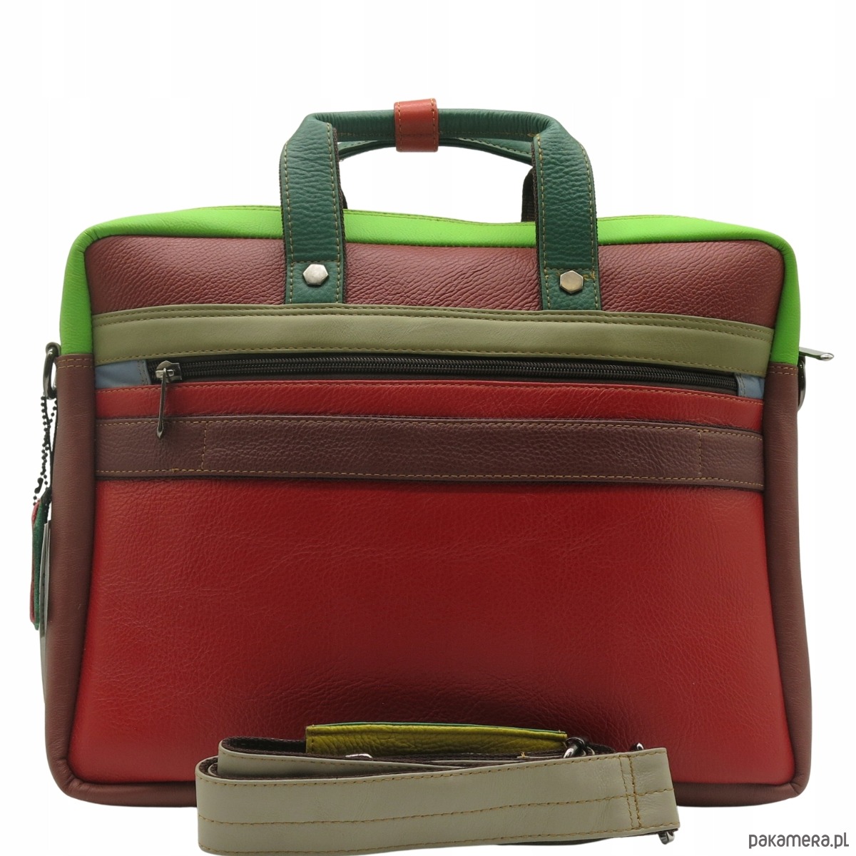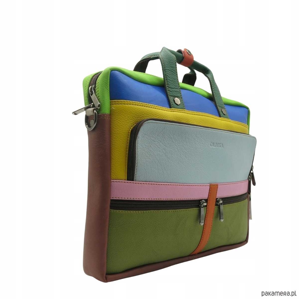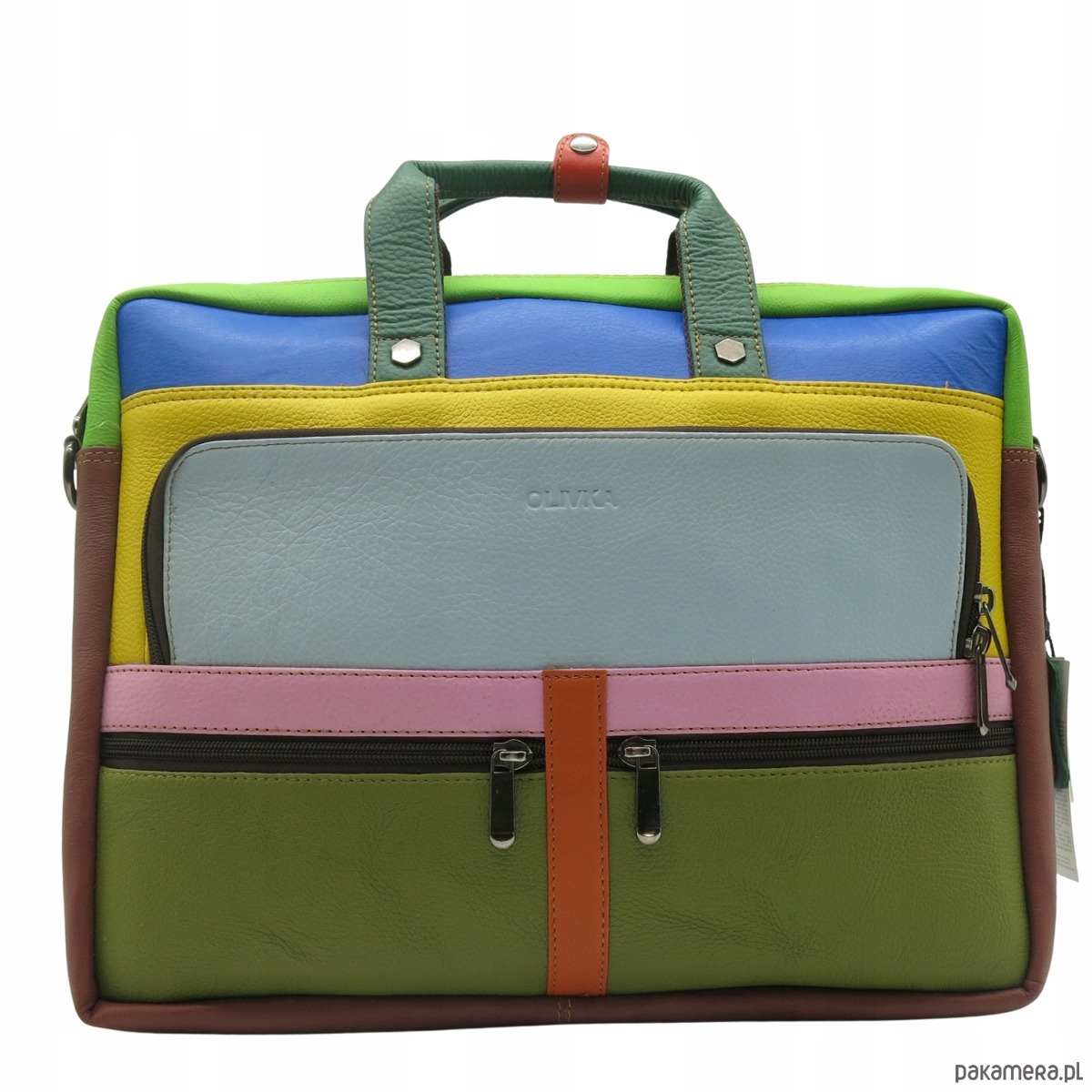 Aktówka torba na laptopa skórzana rączki regulowany pasek kieszenie OLIVKA