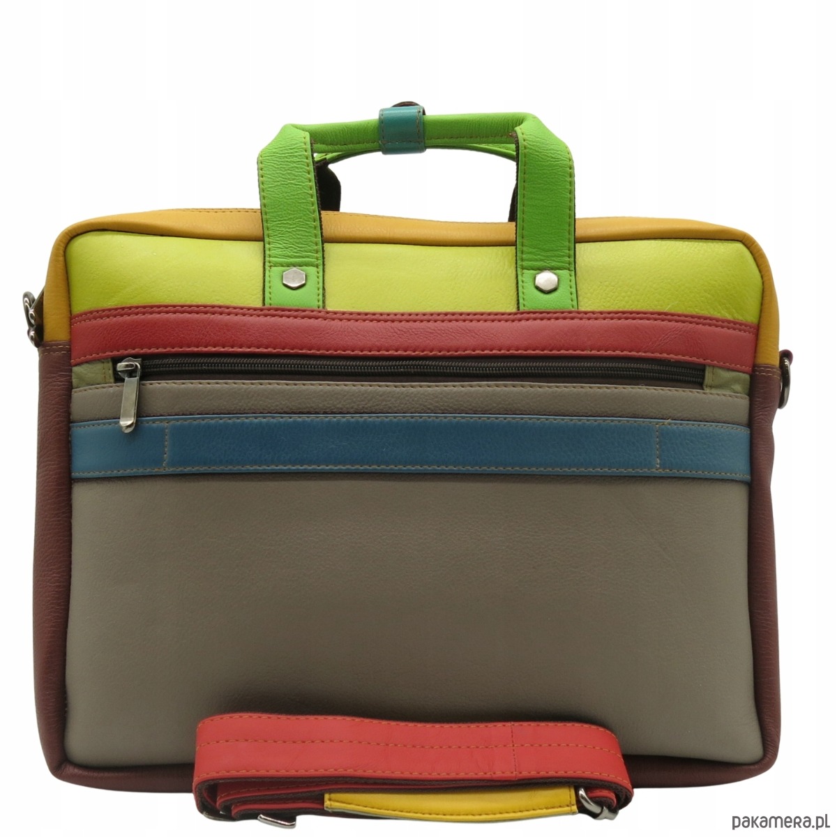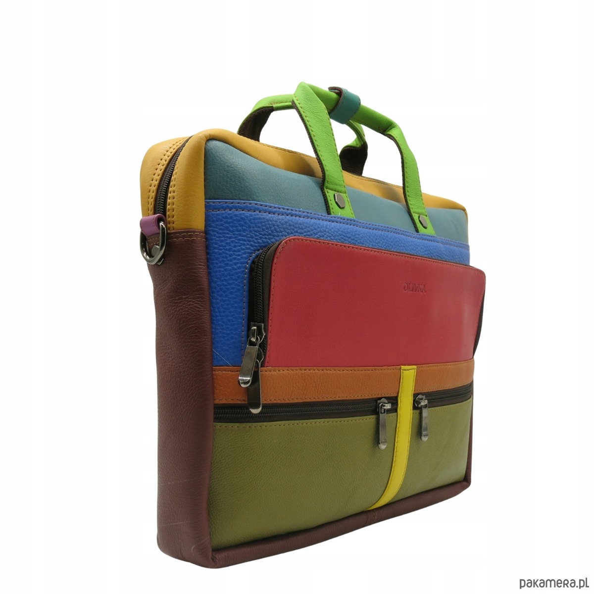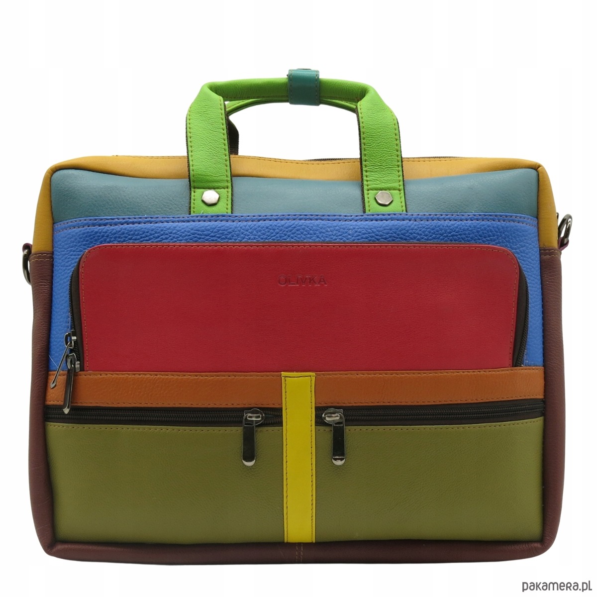 Aktówka torba na laptopa skórzana rączki regulowany pasek kieszenie OLIVKA