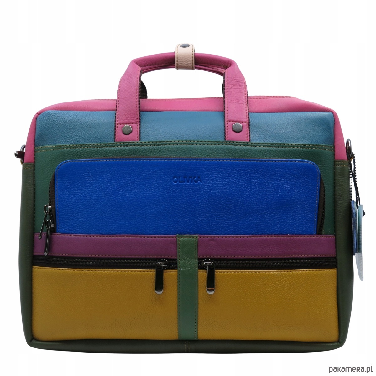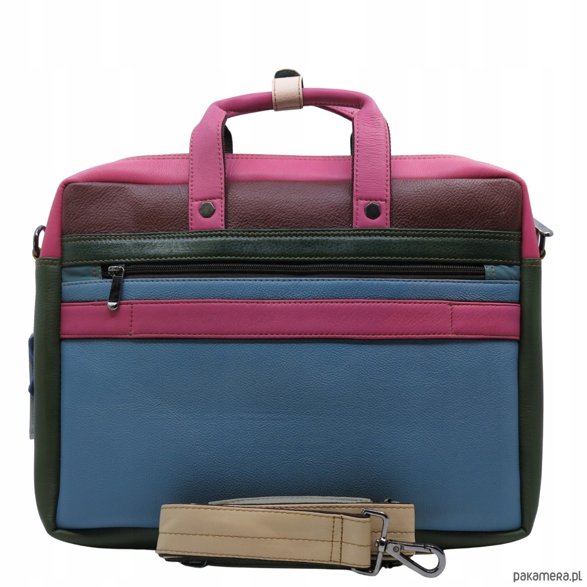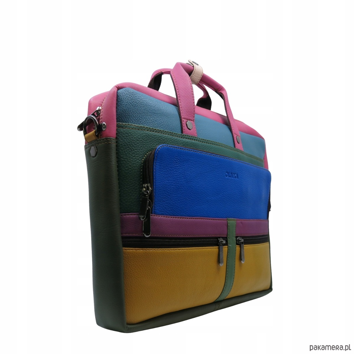 Aktówka torba na laptopa skórzana rączki regulowany pasek kieszenie OLIVKA