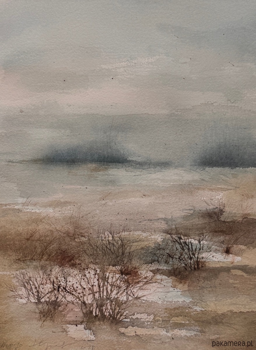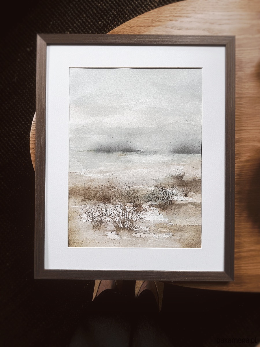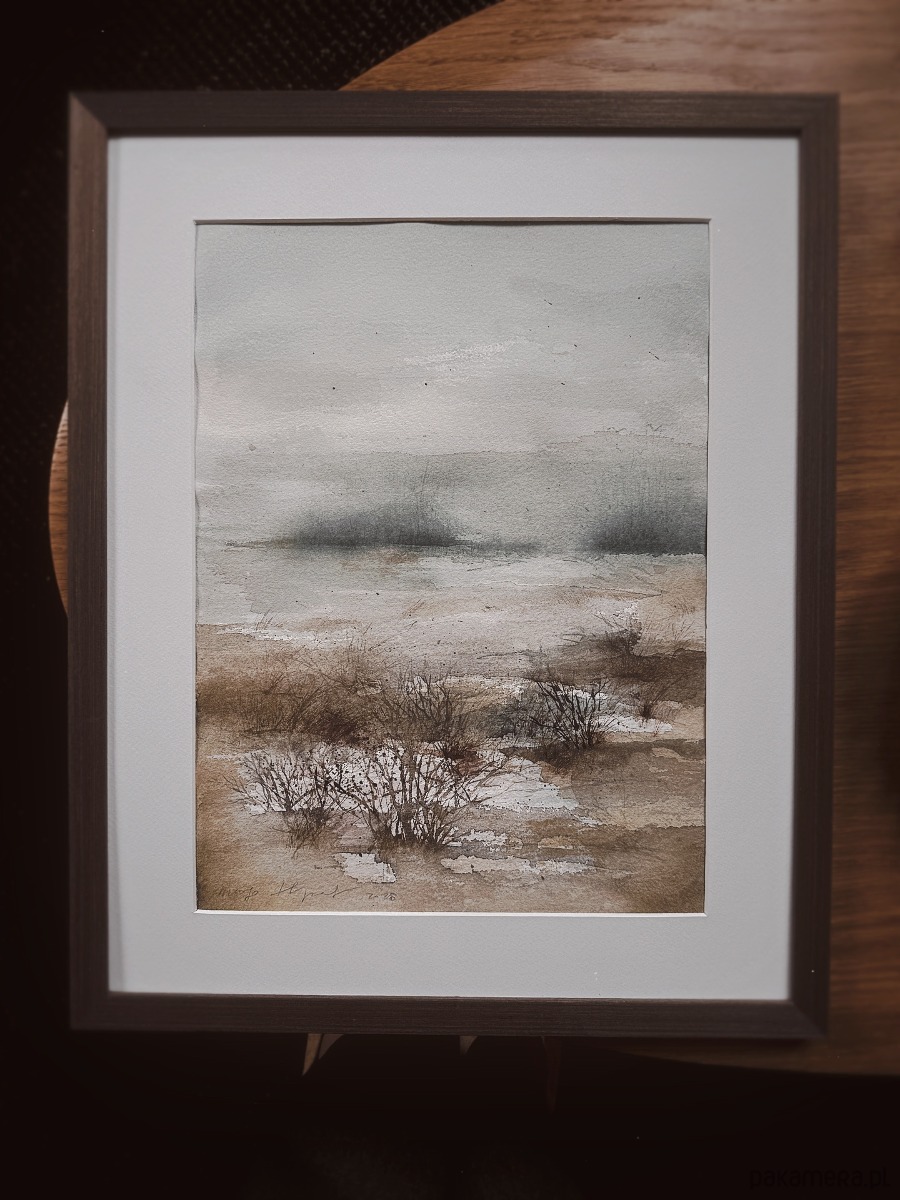 Nastrojowa akwarela, kolorystyka stonowana w kolorach ziemi.
