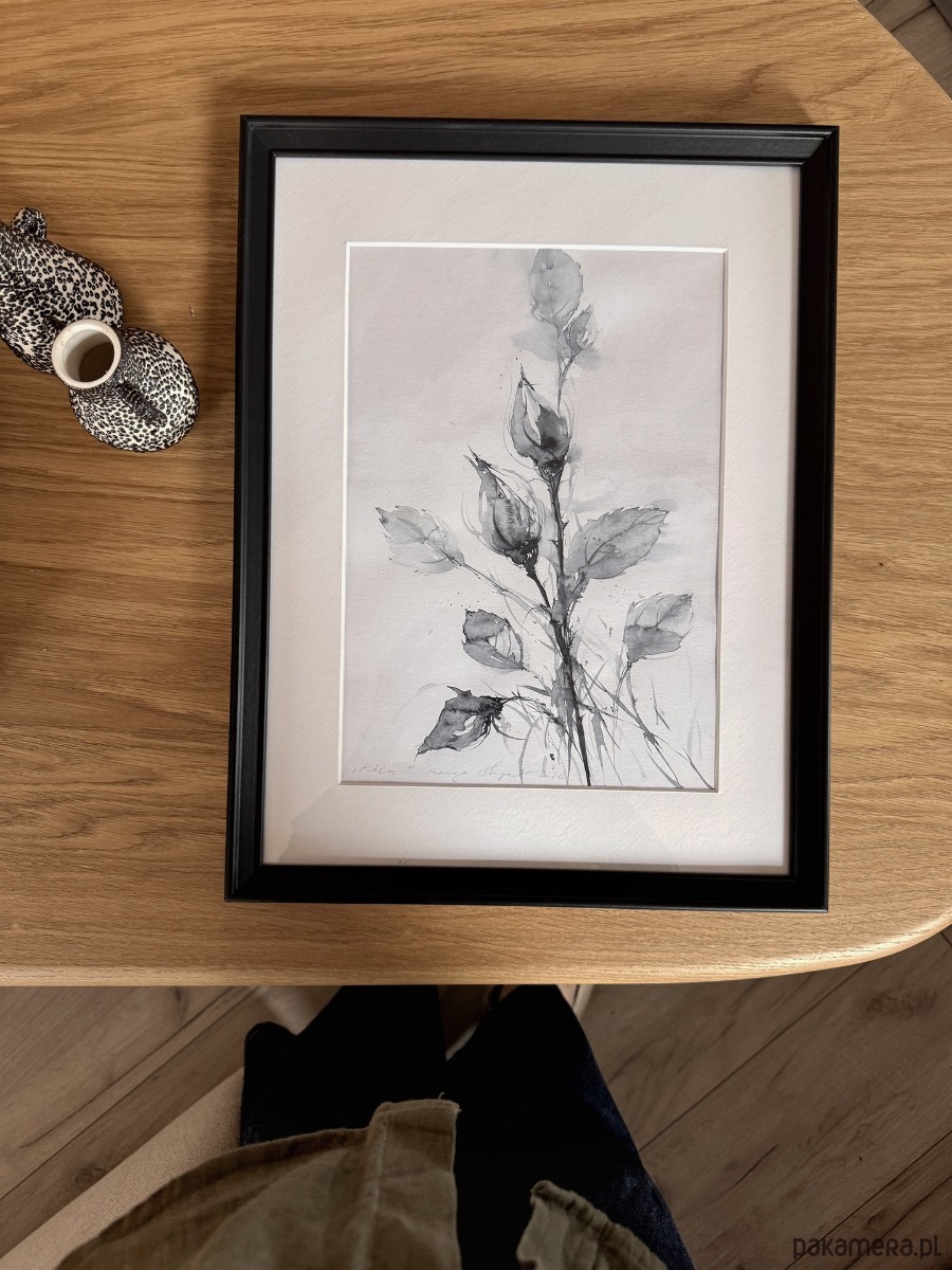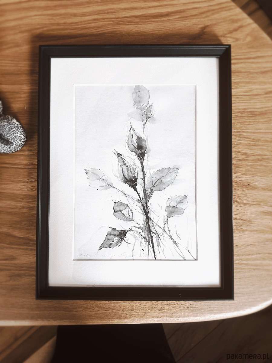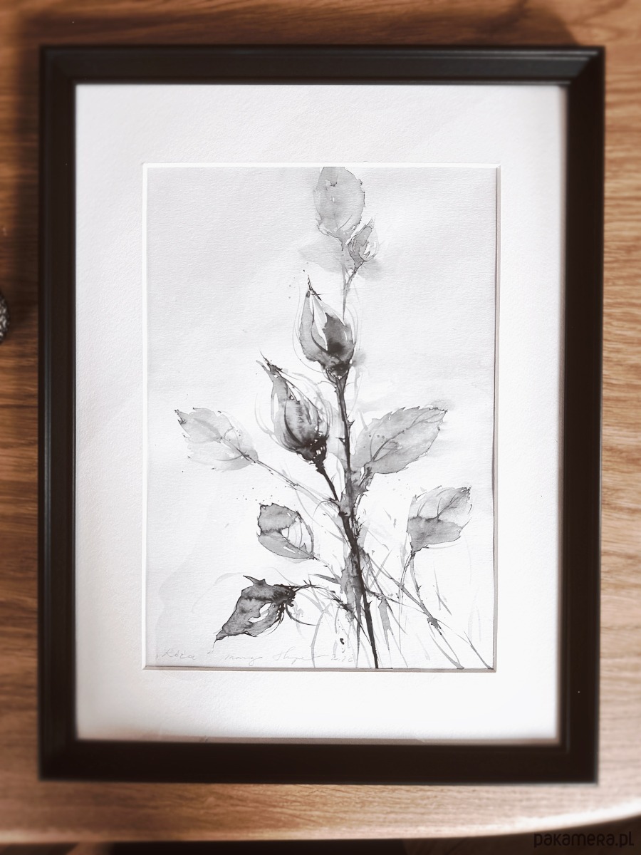 Nastrojowa akwarela, kolorystyka stonowana w szarościach i czerni.