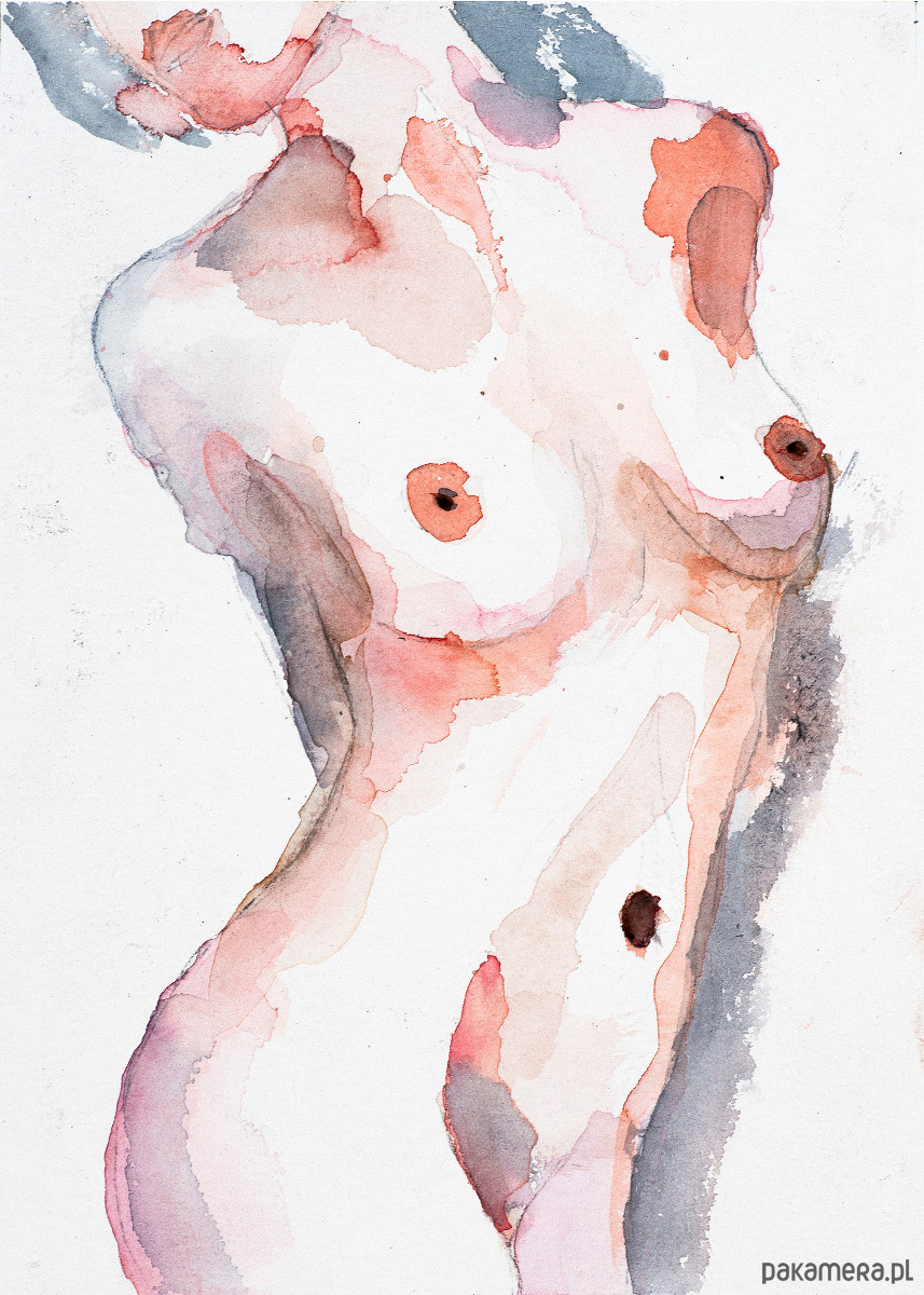 Akwarela przedstawiająca akt kobiecy