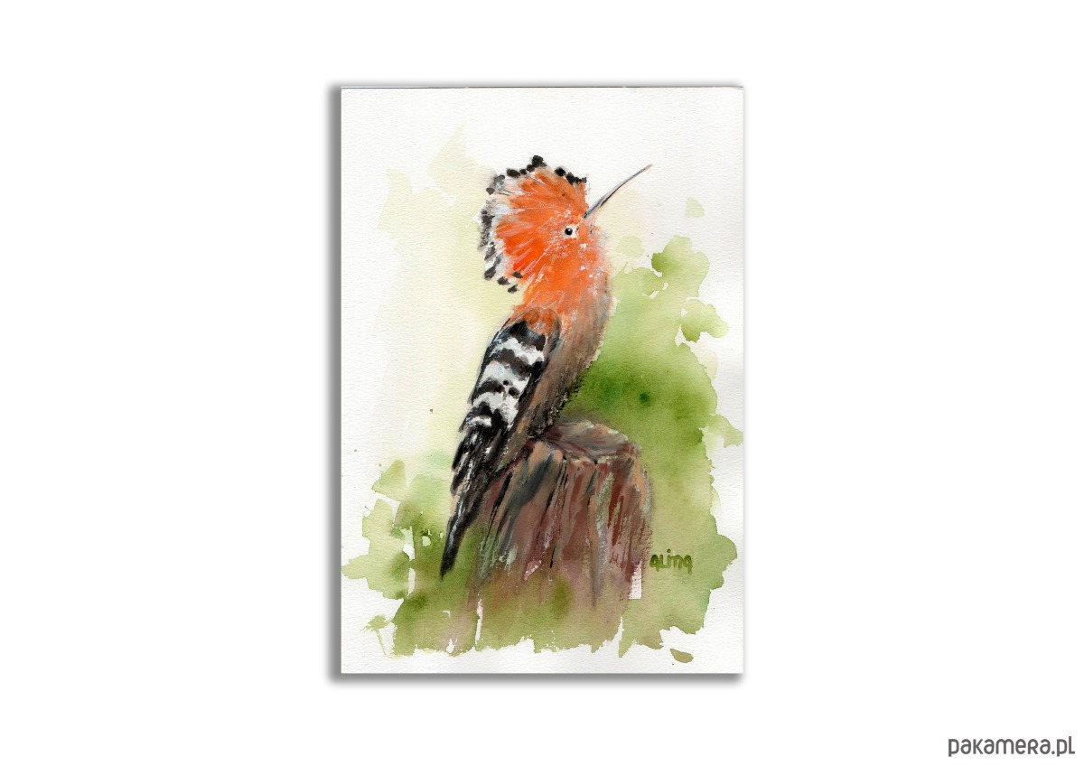 Akwarela ręcznie malowana, wykonana farbami akwarelowymi znanych producentów; na białym, wysokogatunkowym 300g papierze (18x 26cm).