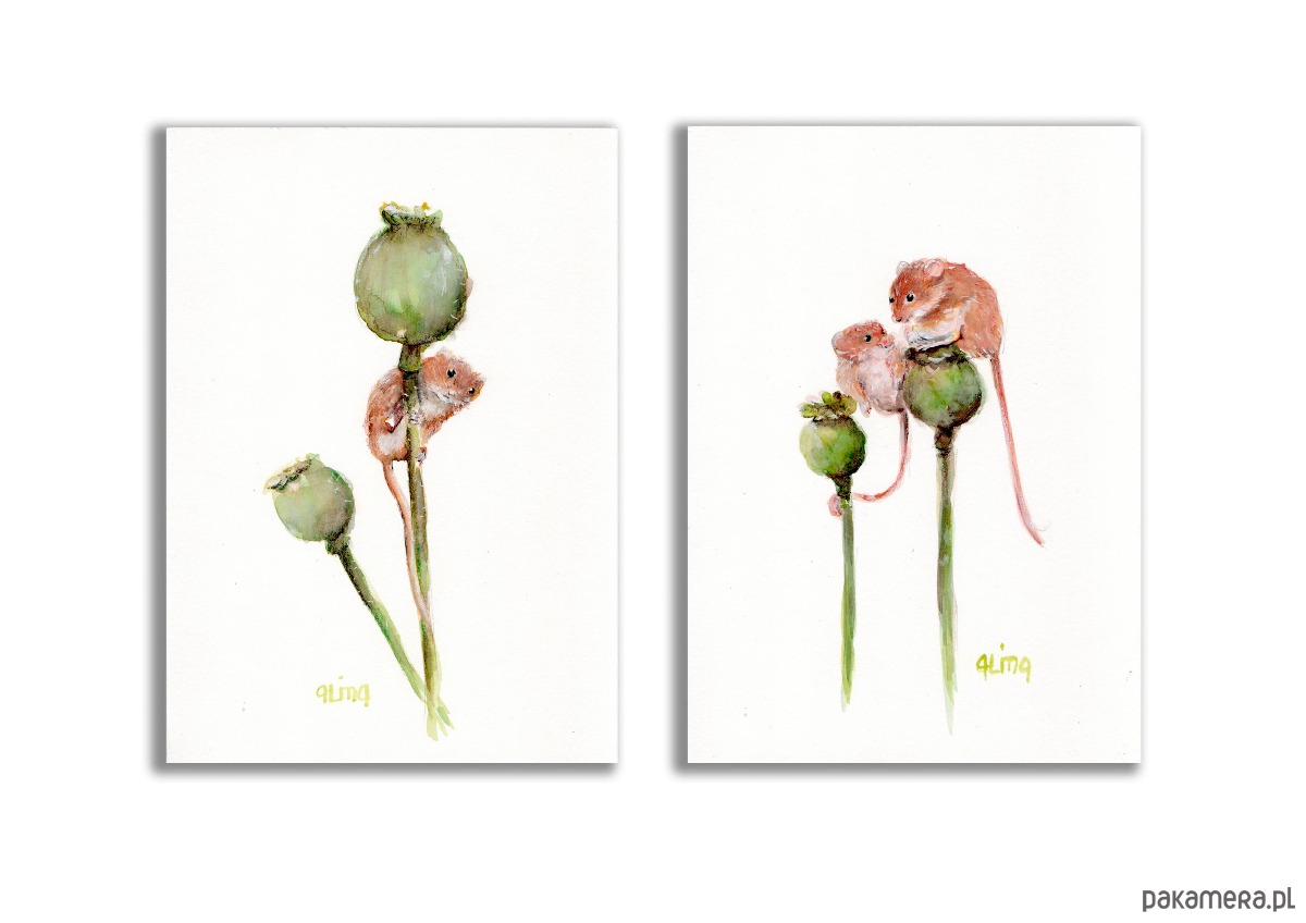 Akwarela ręcznie malowana "Myszki" zestaw szt