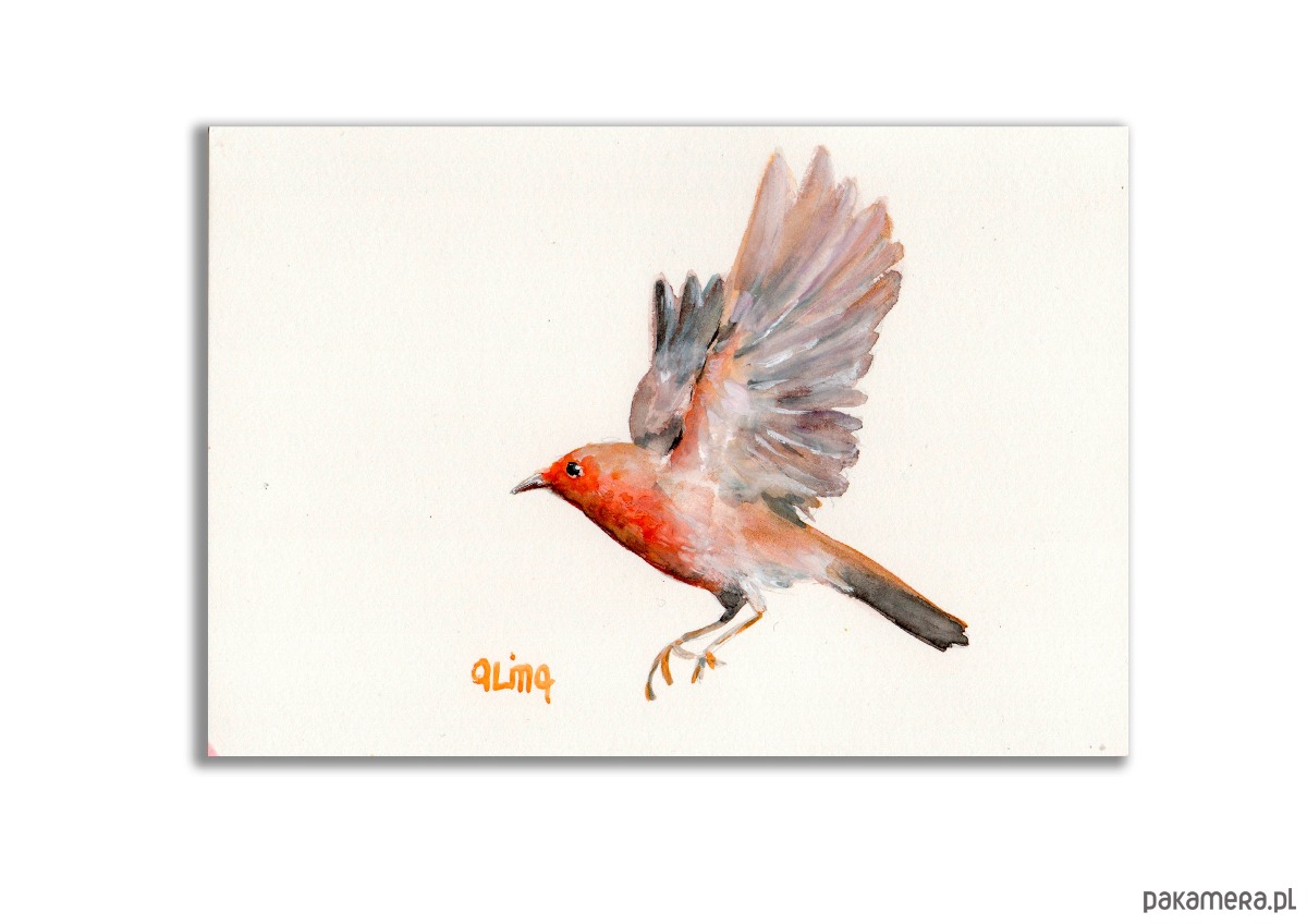Akwarela ręcznie malowana "Rudzik" ptaki