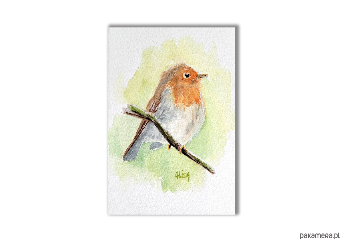 Akwarela ręcznie malowana "Rudzik" ptaki