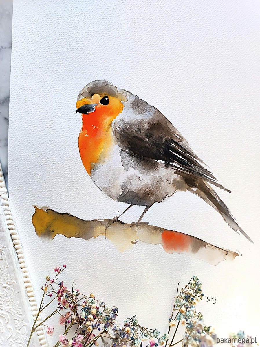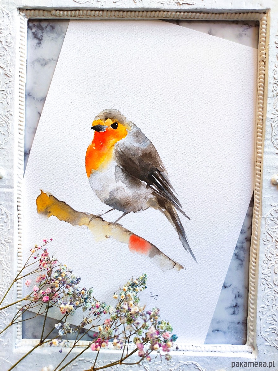 Wykonana profesjonalnymi farbami akwarelowymi Renesans na papierze akwarelowym 300g.