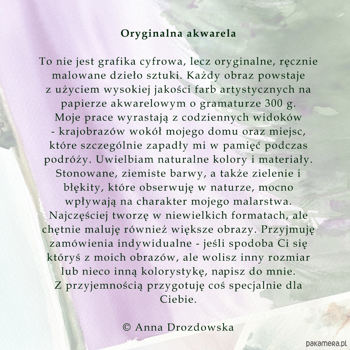 Oryginalna akwarela mojego autorstwa, sygnowana na odwrocie.