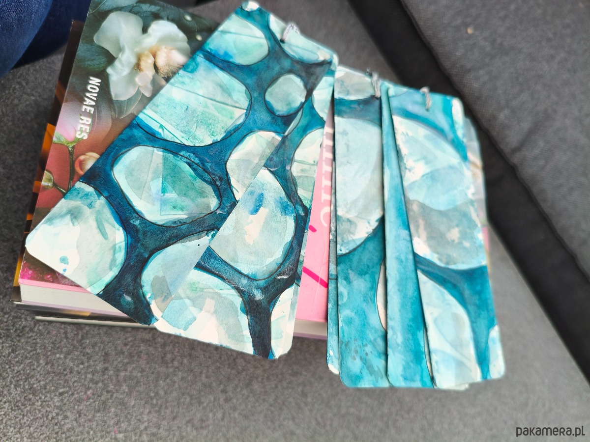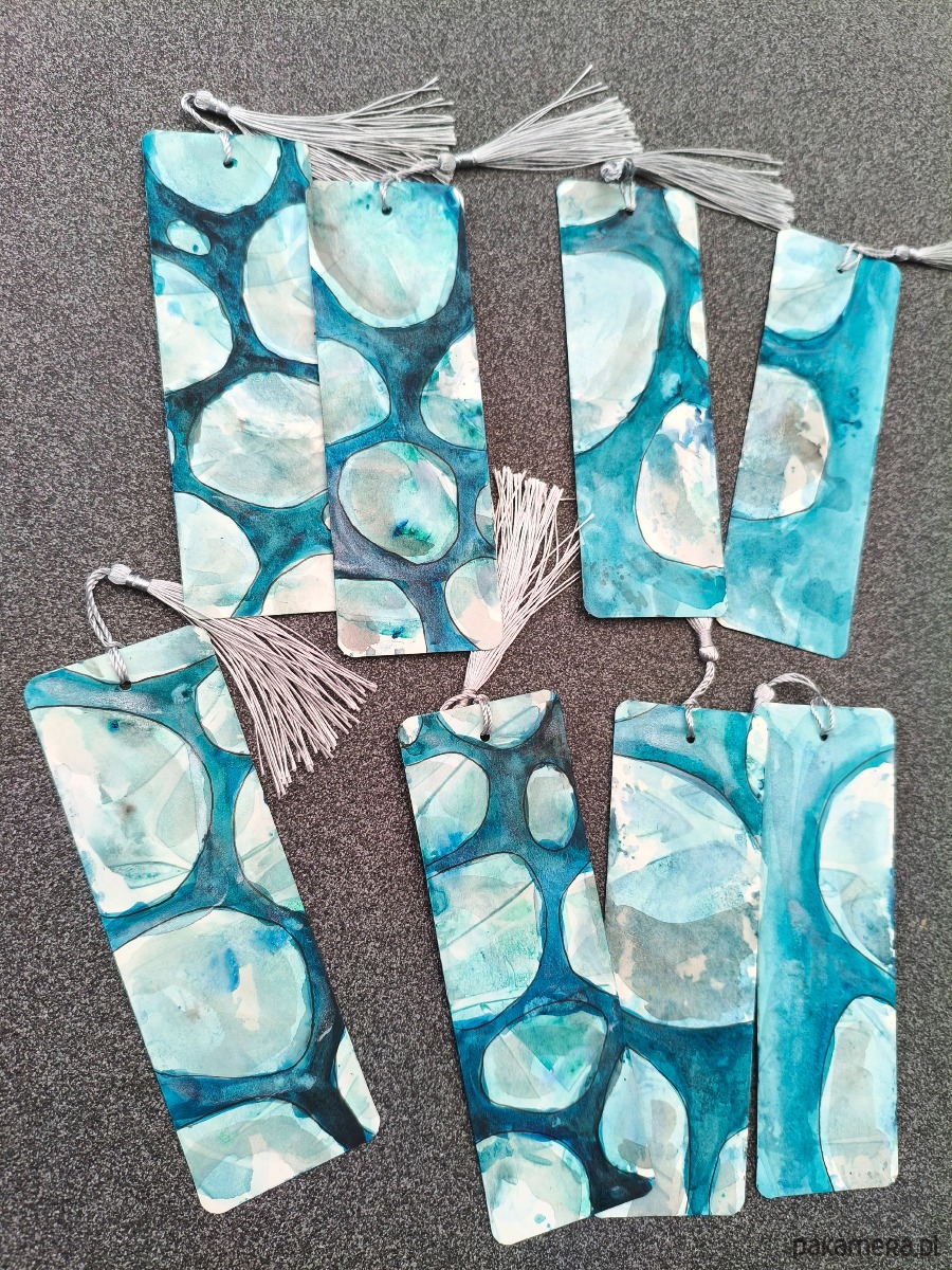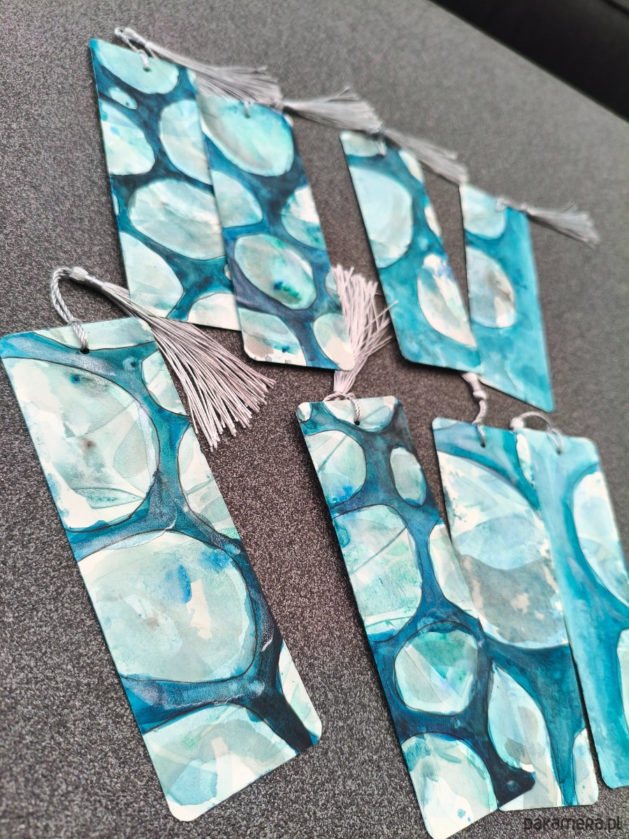 Akwarela Zakładka do Książki różne wzory z Tasiemką Rękodzieło Kamienie