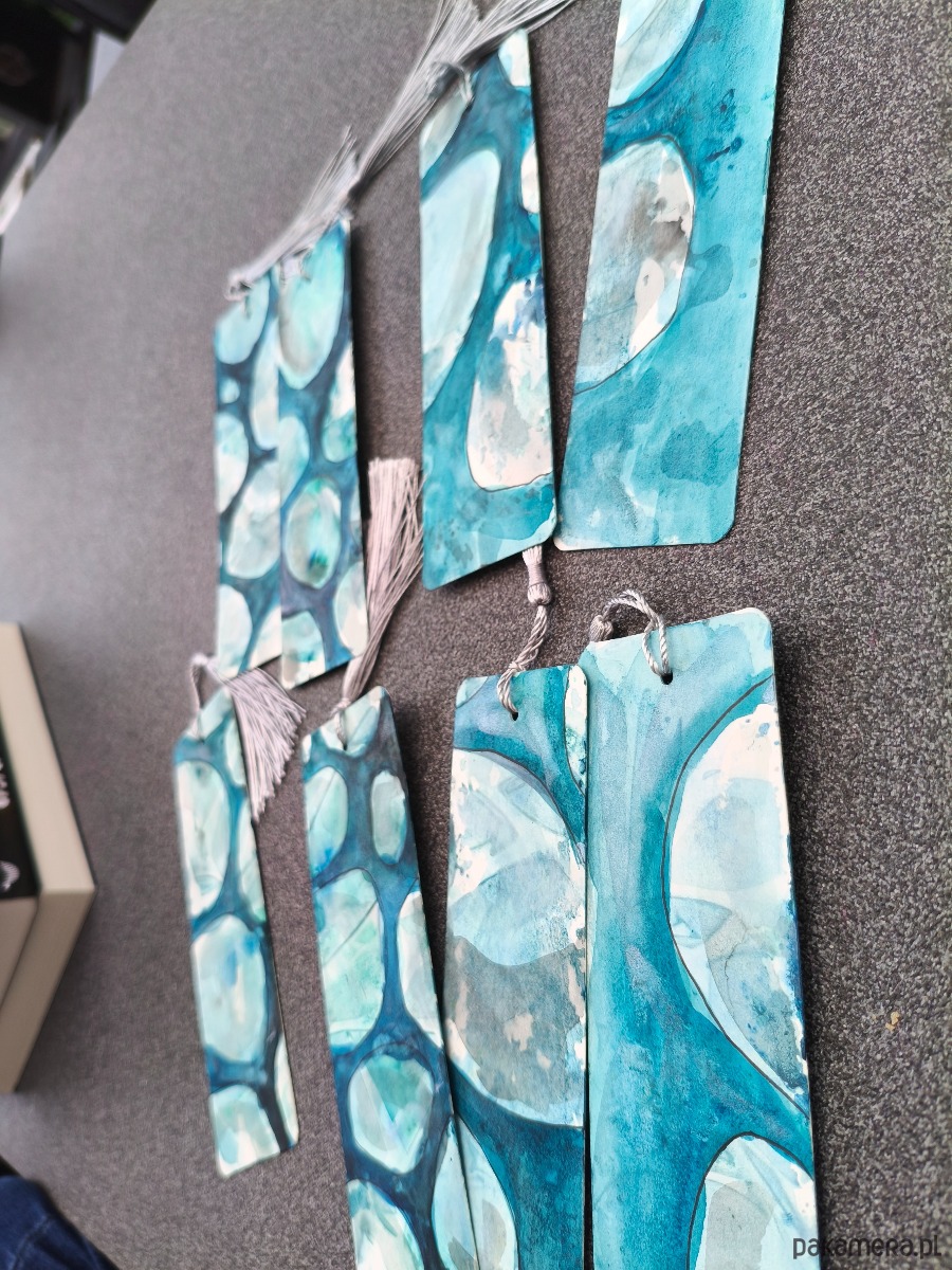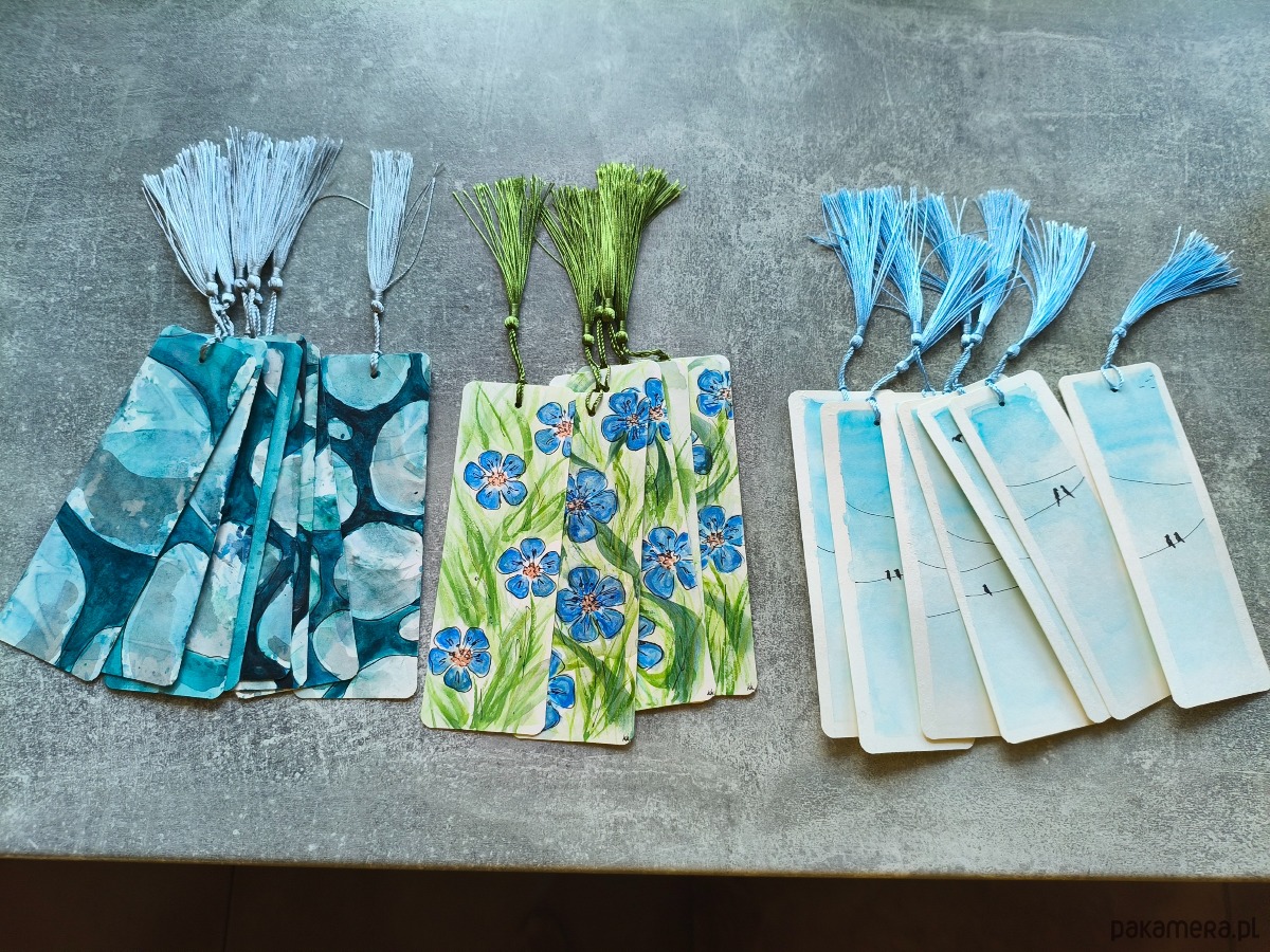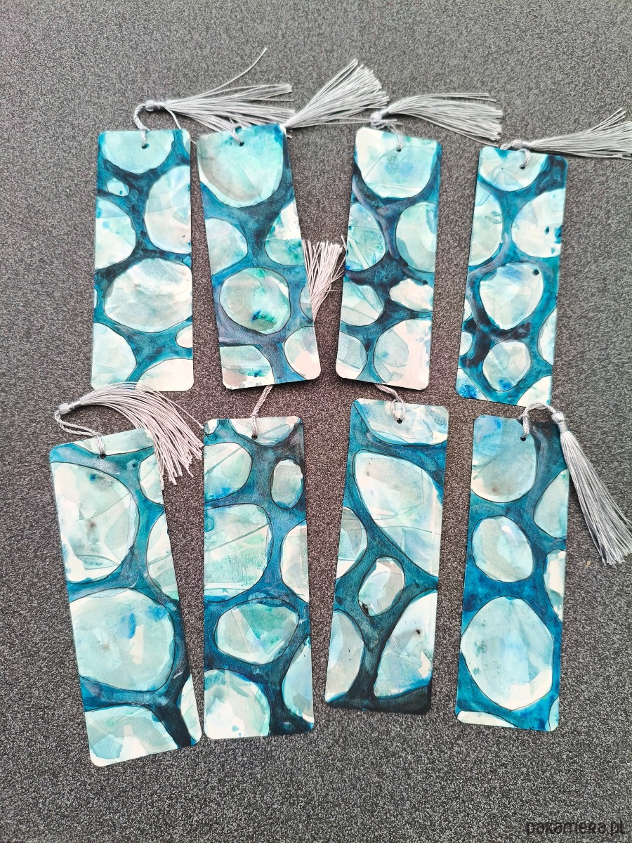 Akwarela Zakładka do Książki różne wzory z Tasiemką Rękodzieło Kamienie