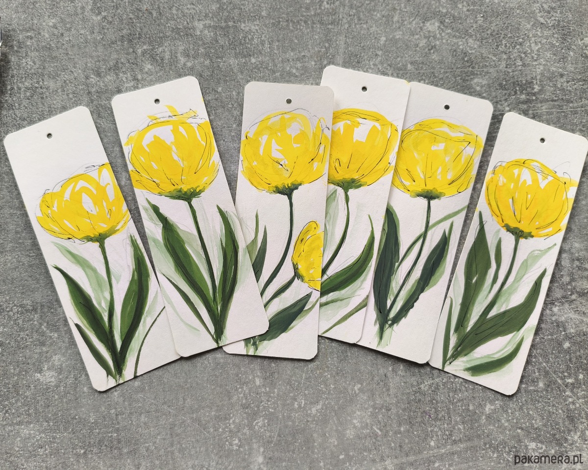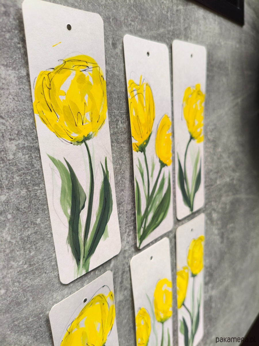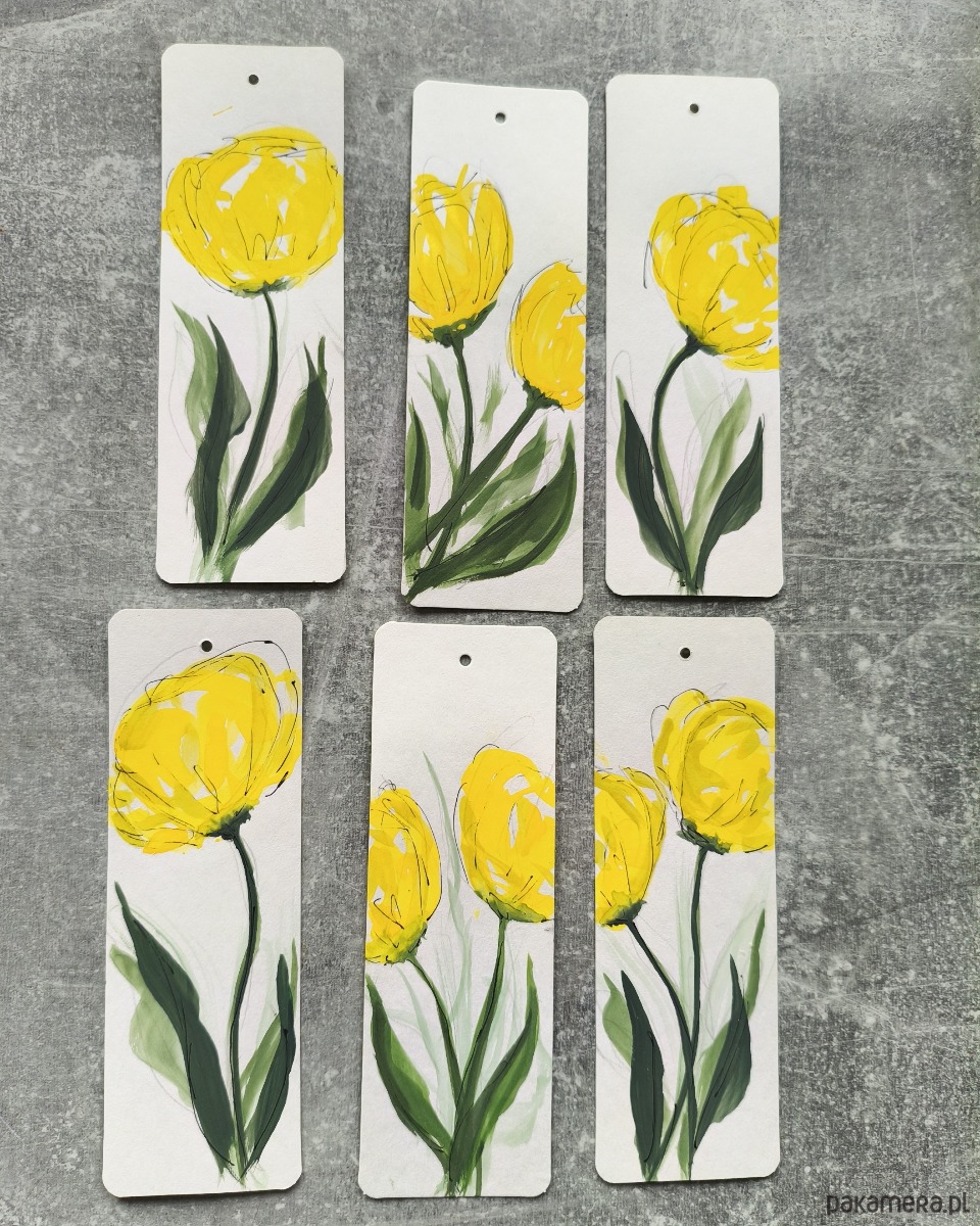 Te urocze zakładki to idealny dodatek dla każdego miłośnika książek, a także wspaniały i oryginalny pomysł na prezent. Każda z nich została z miłością stworzona w technice akwareli, a motywem przewodnim są radosne, żółte tulipany.