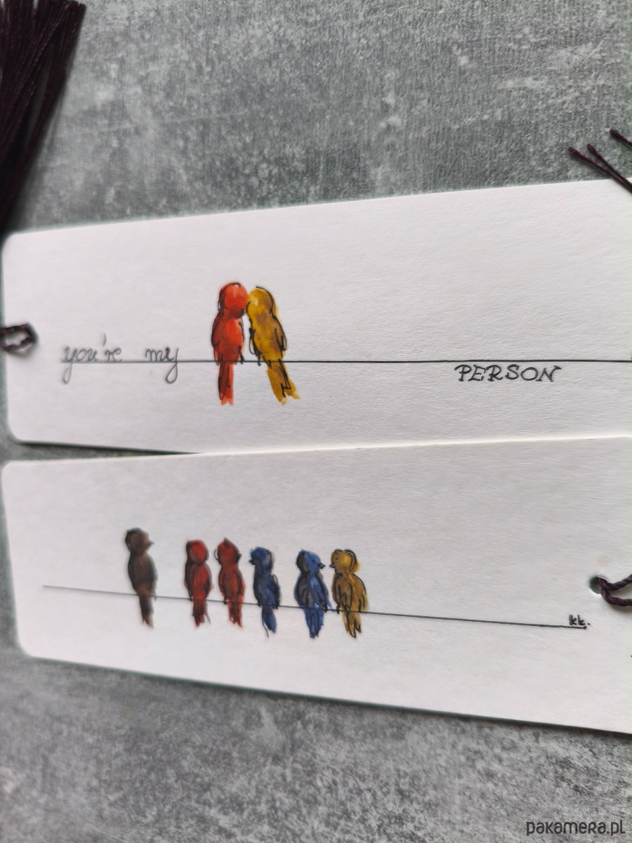Te minimalistyczne zakładki to idealny sposób, by codziennie przypominać bliskiej osobie o tym, jak jest dla Ciebie ważna. Motyw ptaków siedzących na linii symbolizuje wspólną drogę i więź, a słowa "you're my person" (są tu fani serialu Chirurdzy ;)?) sprawiają, że to coś więcej niż zwykły przedmiot – to mały, osobisty manifest uczuć.
