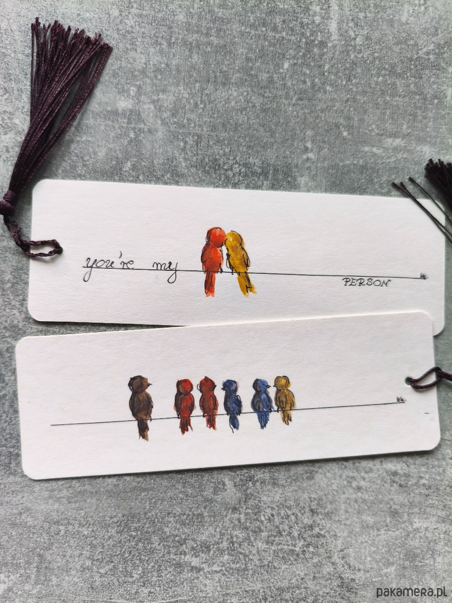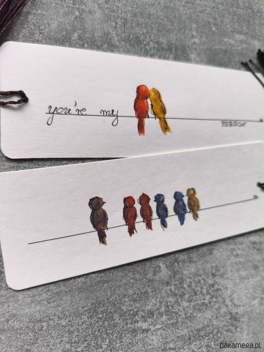 Akwarela Zakładka Książki Ptaki Cytat Miłość Przyjaźń Tasiemka