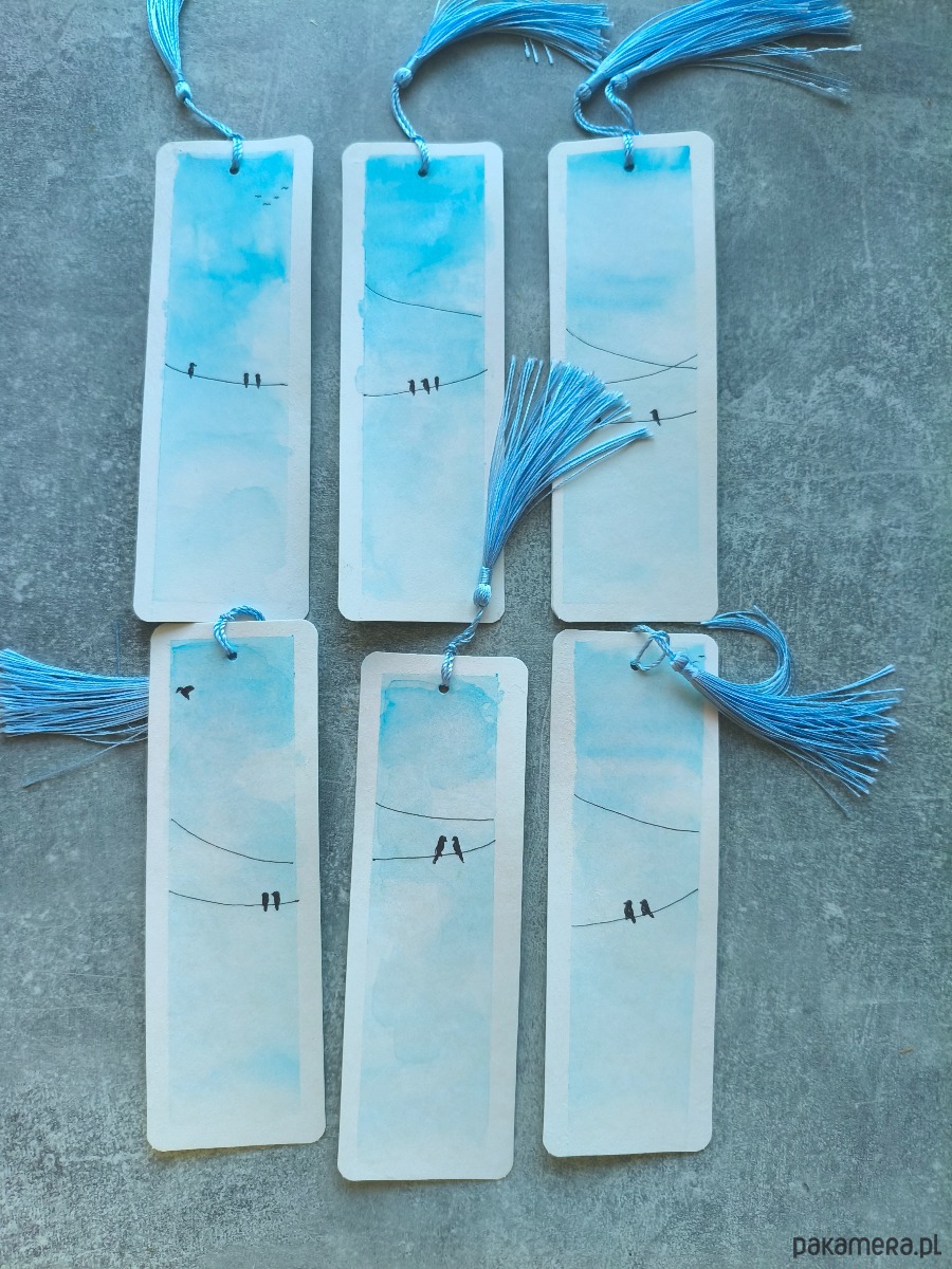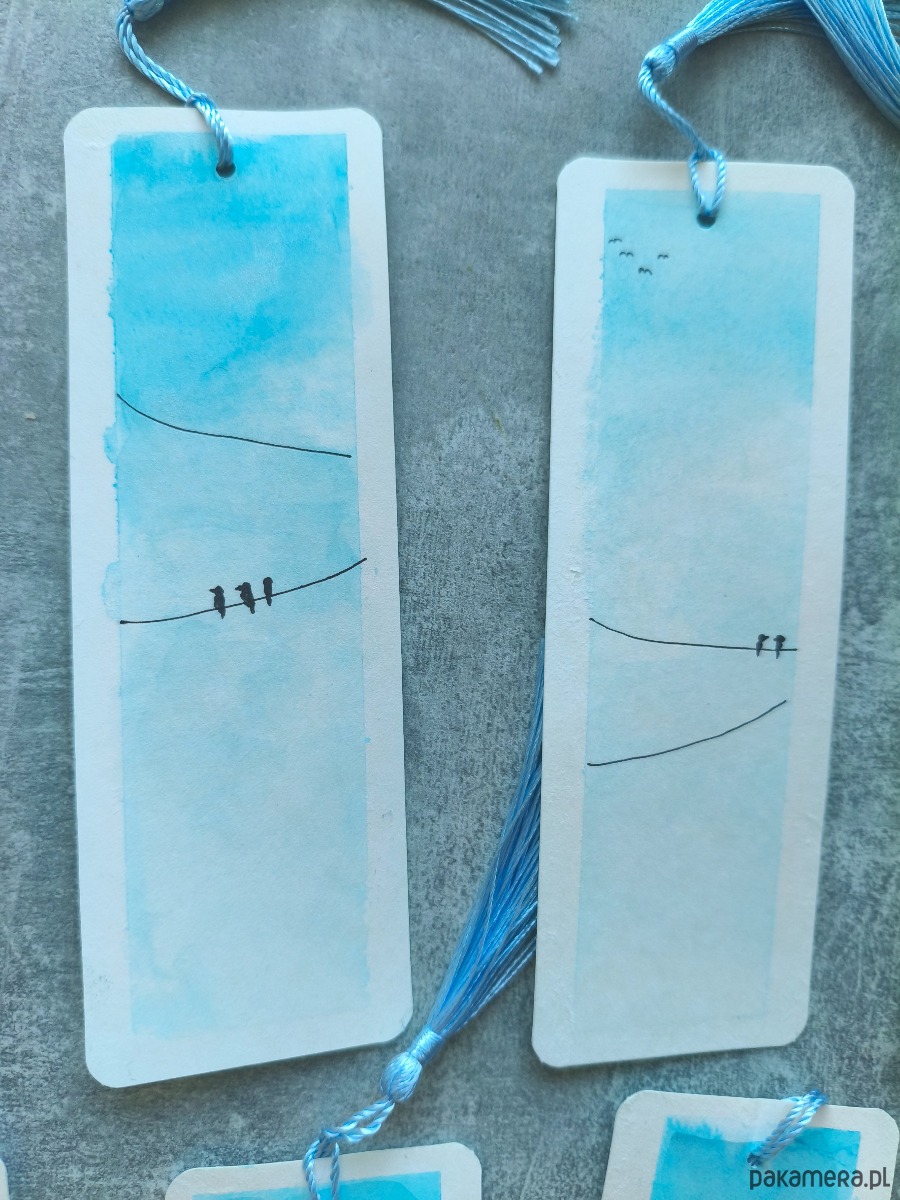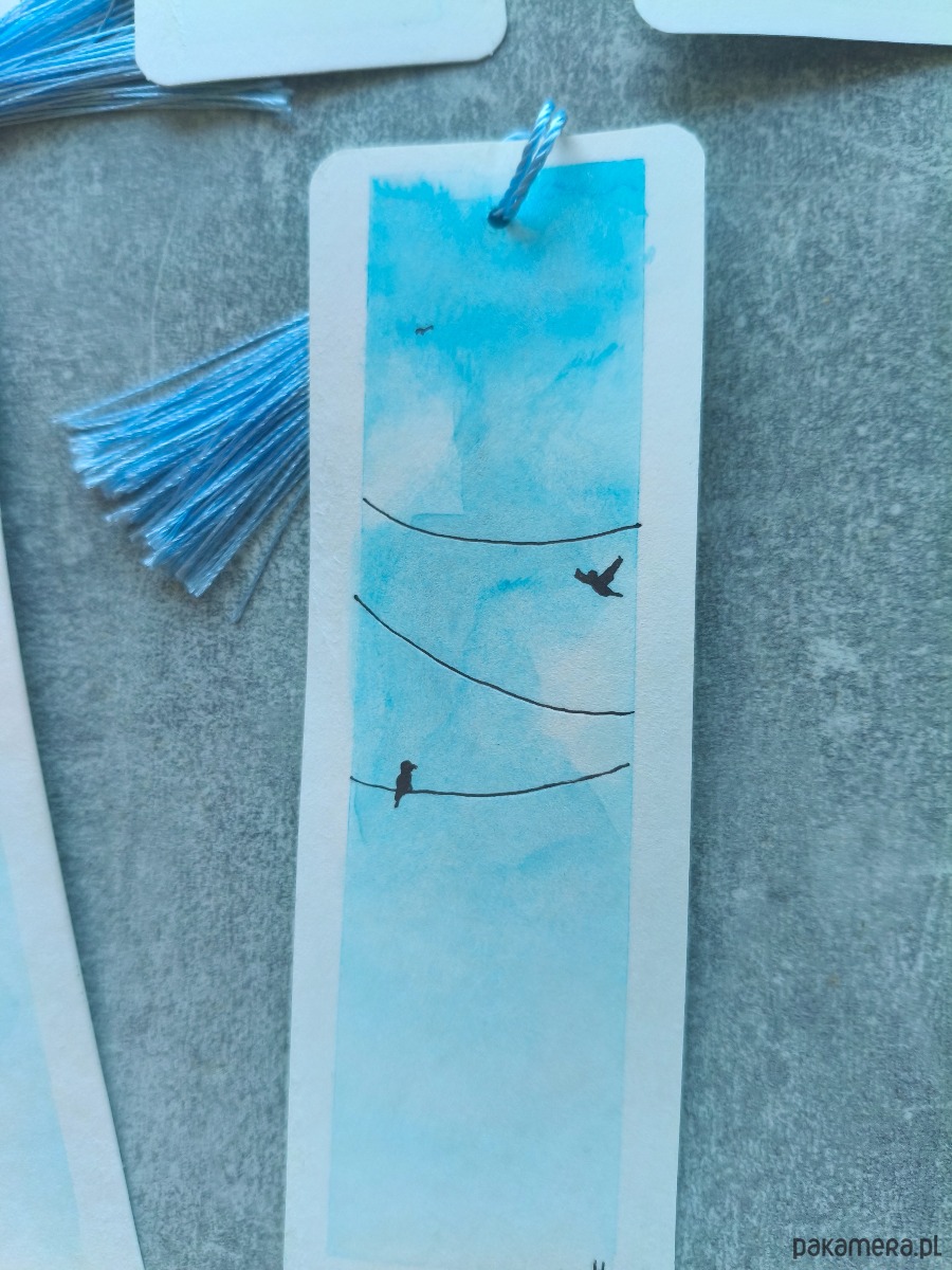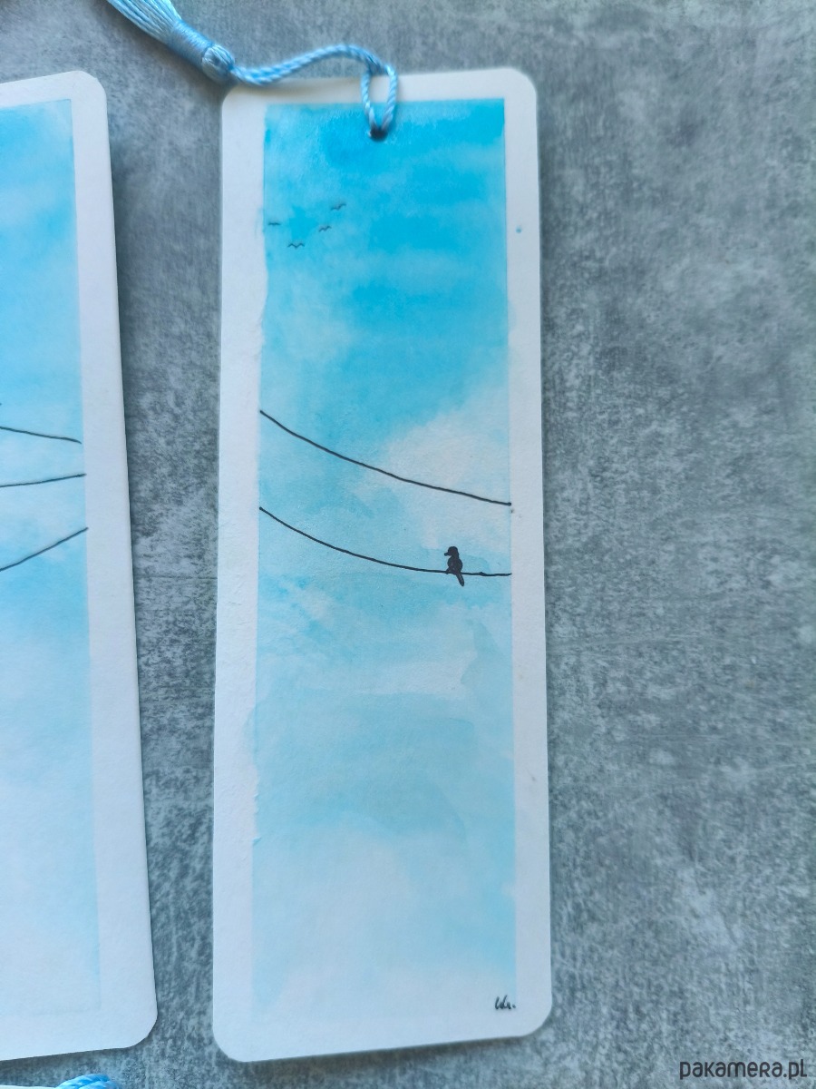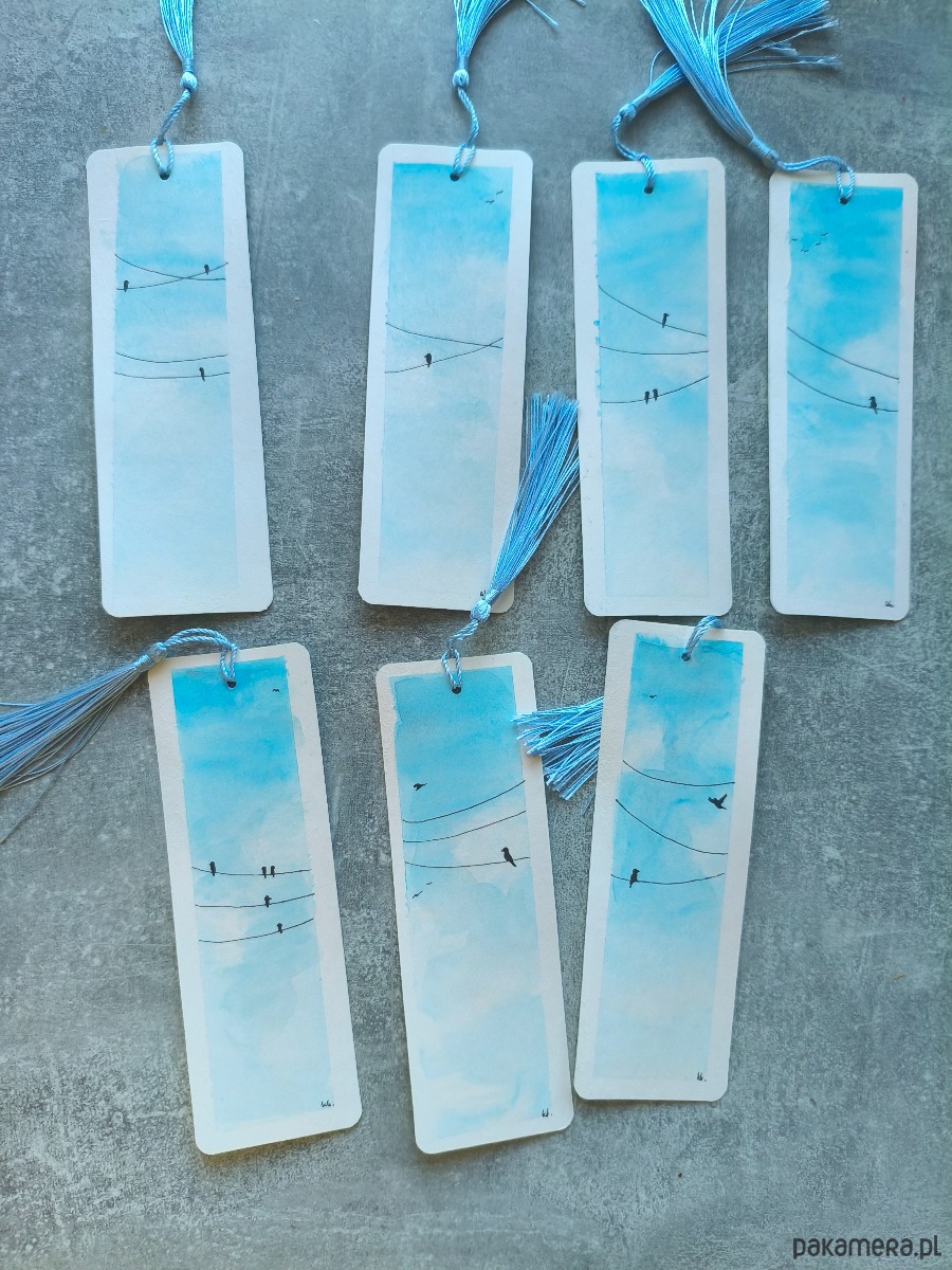 Te delikatne zakładki to coś więcej niż tylko sposób na oznaczenie miejsca w książce – to małe dzieła sztuki, które niosą ze sobą pozytywne przesłanie. Akwarelowe tło w odcieniach błękitu symbolizuje otwarte niebo i przestrzeń do rozwoju, a motyw ptaszków siedzących na linii wraz z cytatem "fly high" (lataj wysoko) dodaje im inspirującego charakteru.