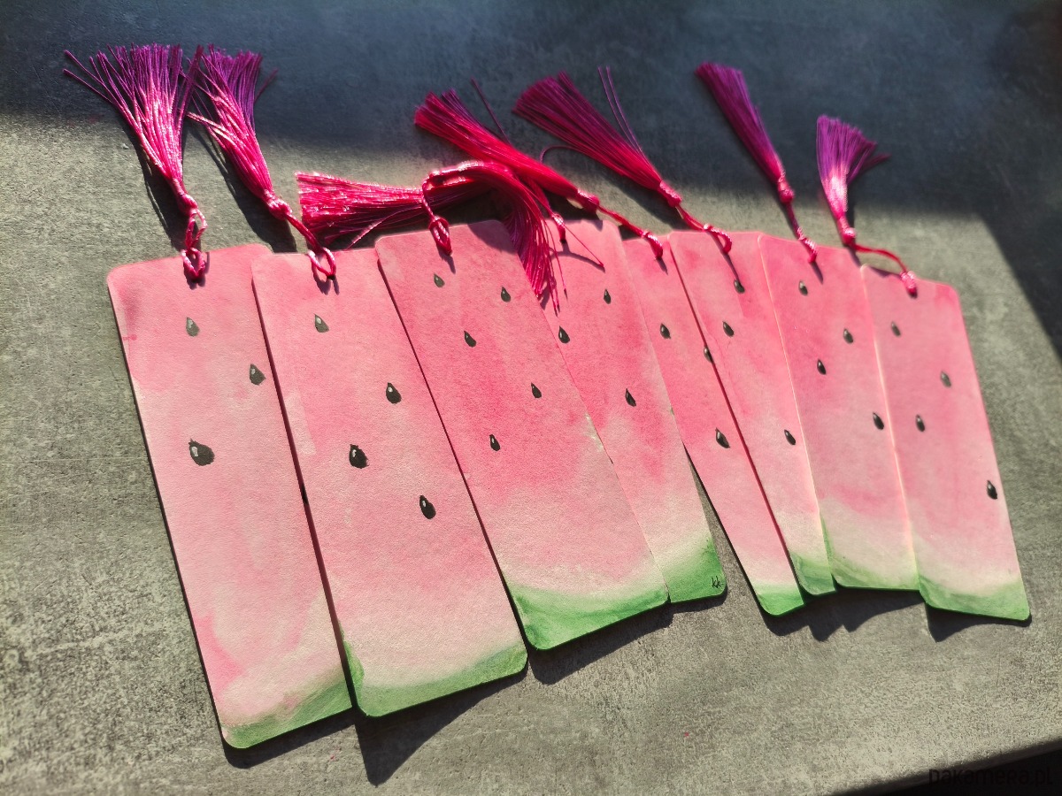Akwarela Zakładka Tasiemka Książki Owoce Arbuz Rękodzieło