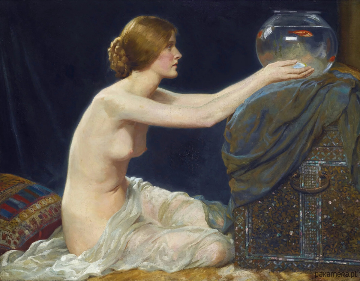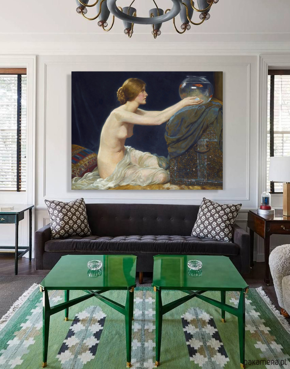 Akwarium ze złotą rybką -A.H. Collings - obraz na płótnie lub plakat