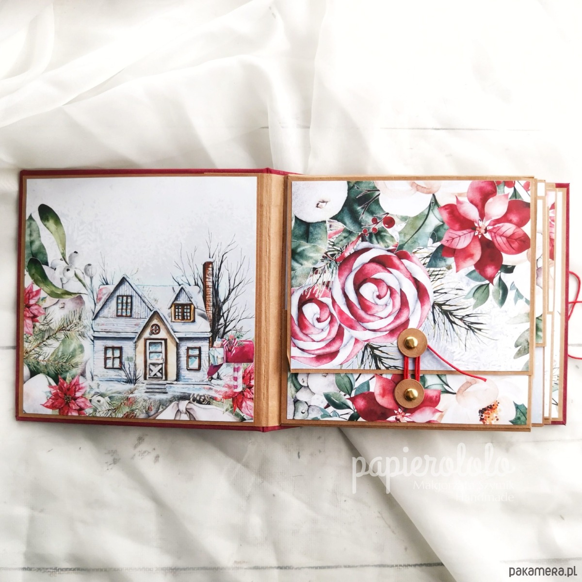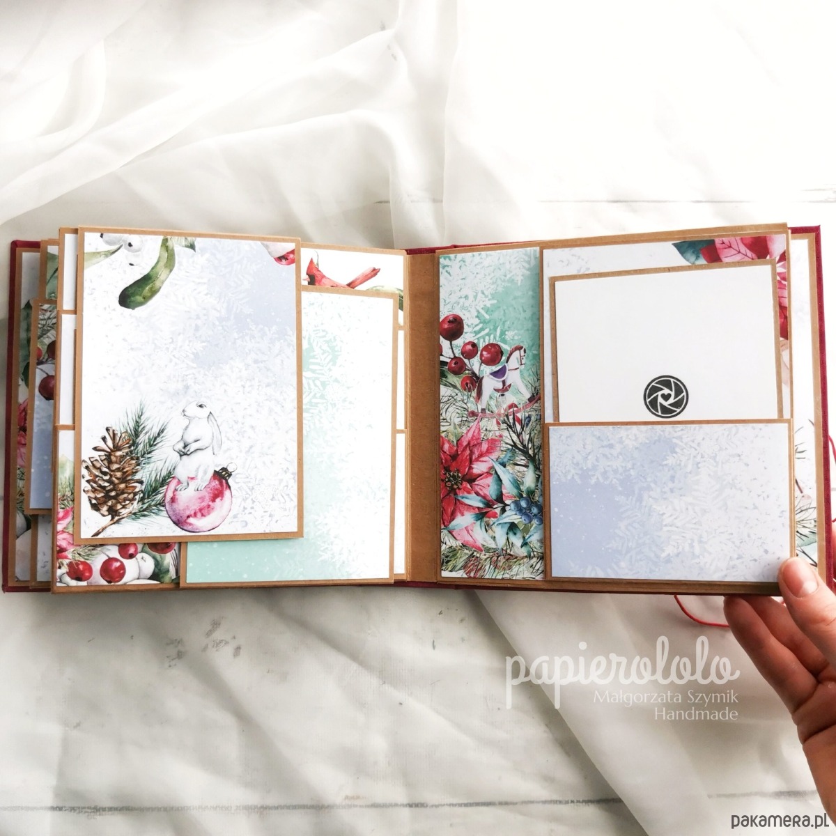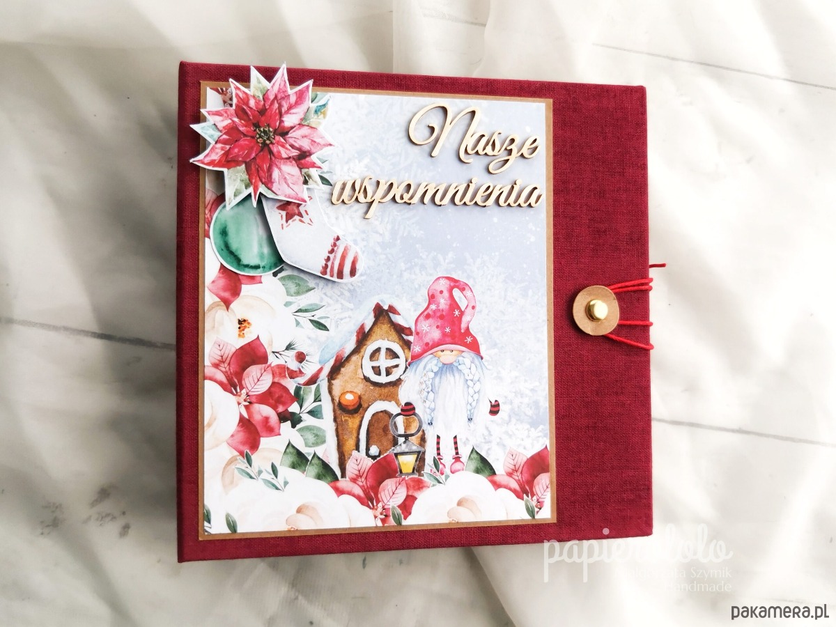 Szczegóły: Album z motywem świąt Bożego Narodzenia i akcentem słodkich świątecznych gnomów. W albumie zmieszczą się zdjęcia o formacie 9×13 – ok. 40 zdjęć w zależności od ich rozmieszczenia. Zdjęcia można przyklejać bezpośrednio na klapki zamykane na magnes lub sznurek lub wsuwać w kieszenie.