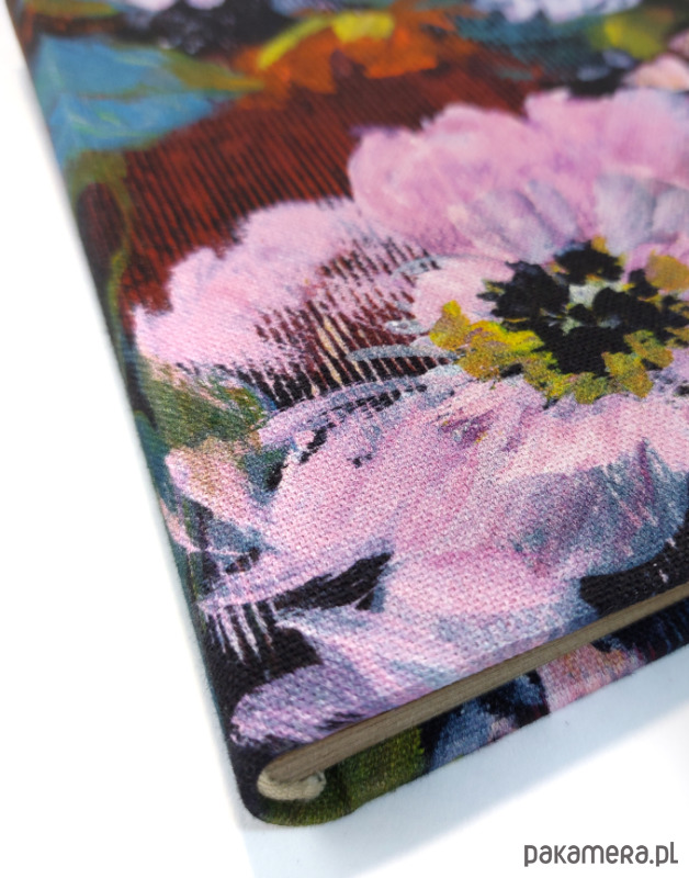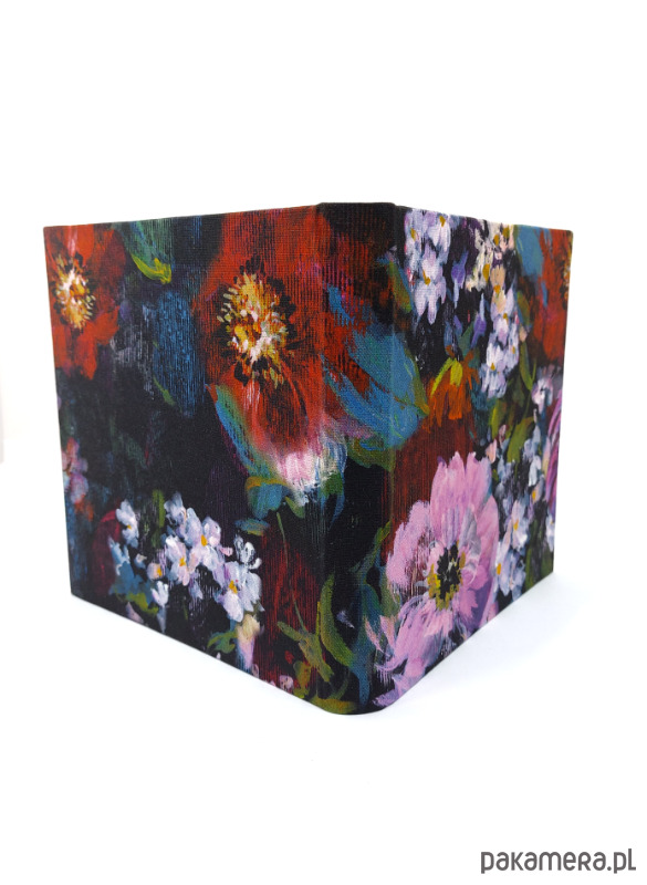 Kwiaty na ciemnym tle, jak kwieciste niebo zdobią okładkę tego albumu Wybrałam dla niego karty w kolorze beżu, zawsze modne i doskonale komponujące się z każdym rodzajem fotografii. Zapakuję go dla Ciebie w elegancki papier i dobraną w kolorze wstążkę.