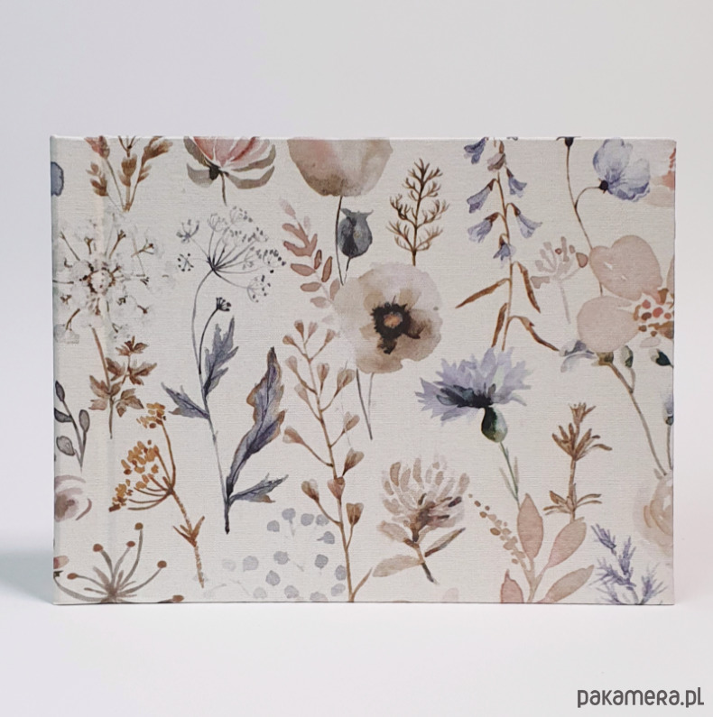 Album Łąka zaprojektowałam dla miłośników przyrody i naturalnych materiałów. Każdy z egzemplarzy różni się od siebie układem roślinnym i wewnątrz ma modne w tym roku karty koloru brązowego. Doskonale wpisuje się w stylistykę Boho.
