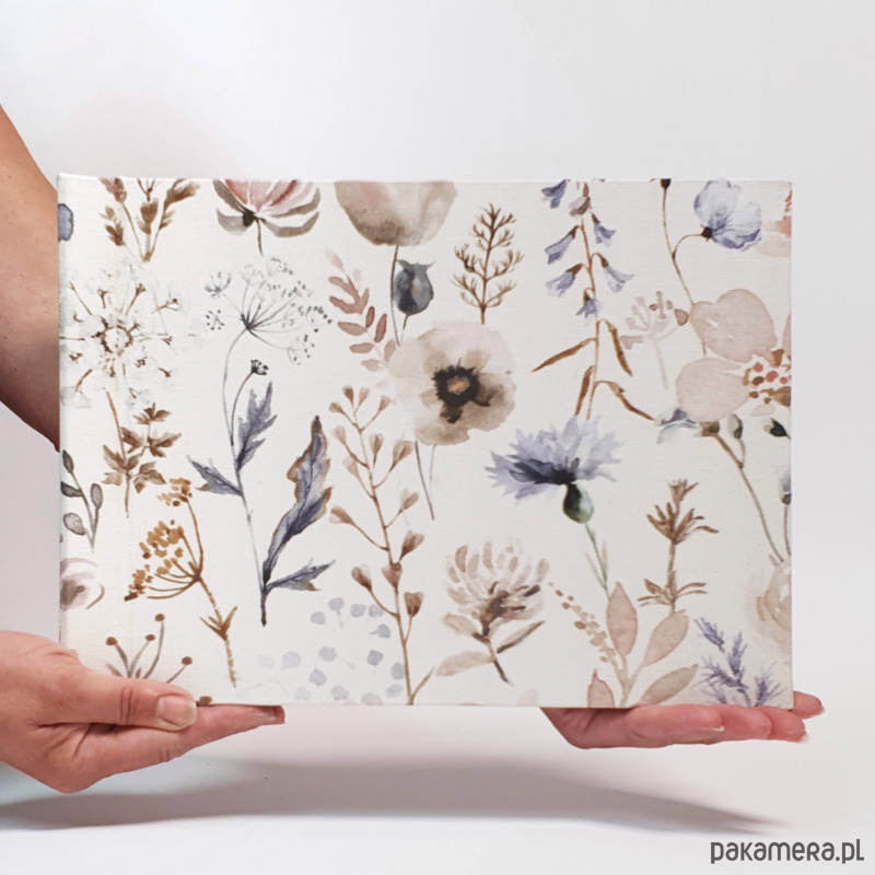 Album Łąka zaprojektowałam dla miłośników przyrody i naturalnych materiałów. Każdy z egzemplarzy różni się od siebie układem roślinnym i wewnątrz ma modne w tym roku karty koloru brązowego. Doskonale wpisuje się w stylistykę Boho.