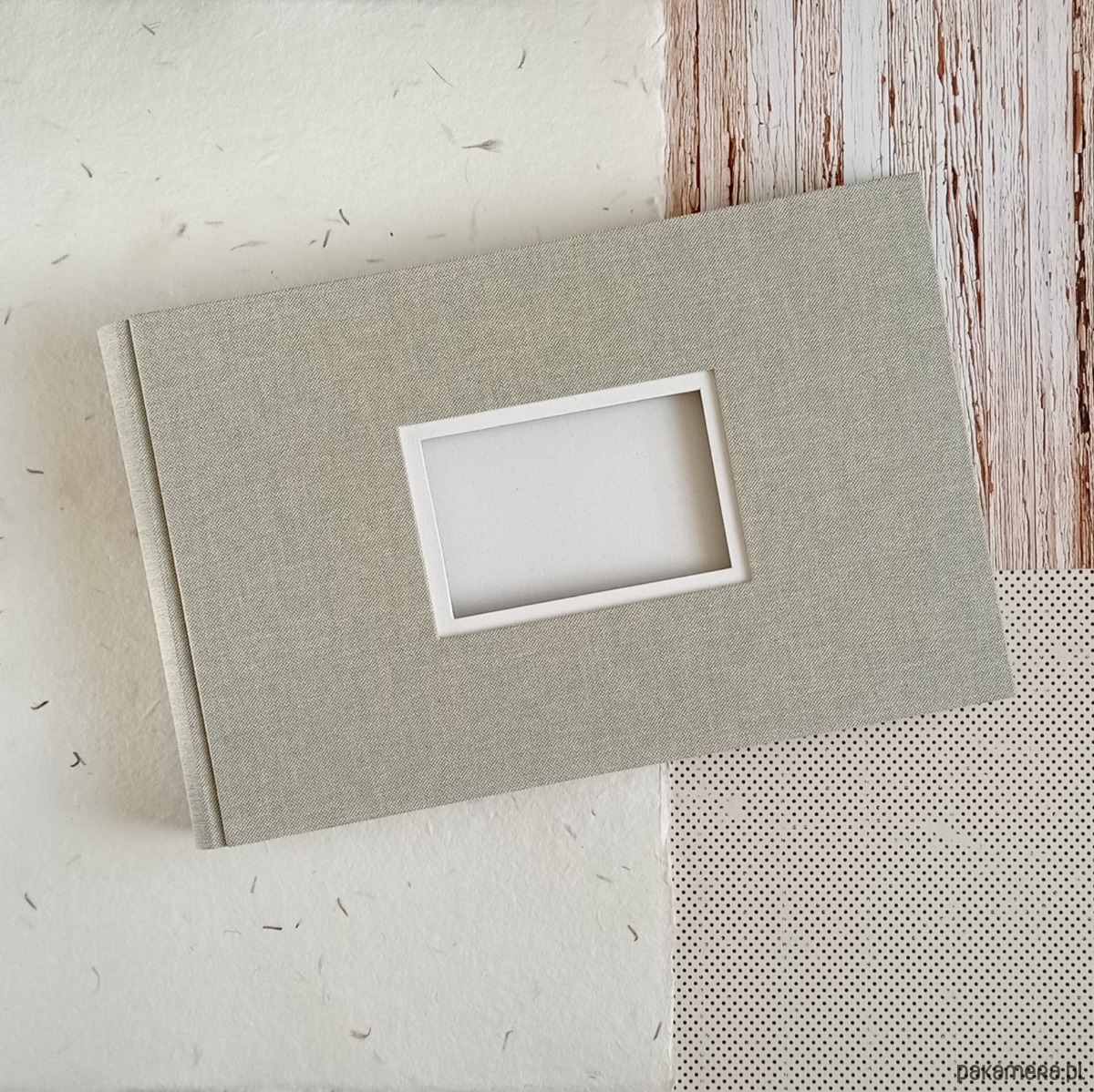 W przedniej okładce wycięte jest okienko przez które będzie widać pierwszą wklejoną fotografię.