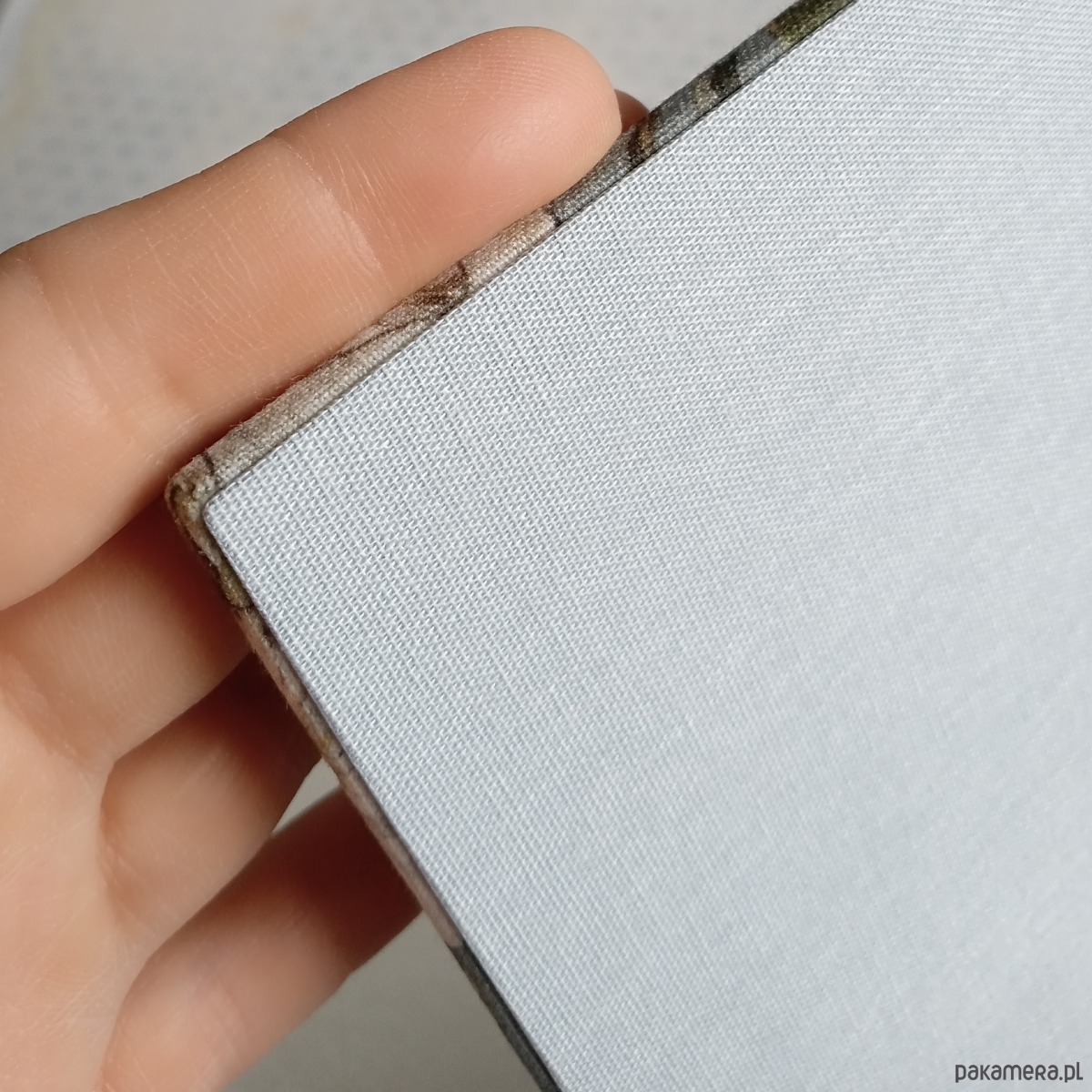 Wewnętrzna strona okładek została wyklejona błękitnym bawełnianym płótnem
