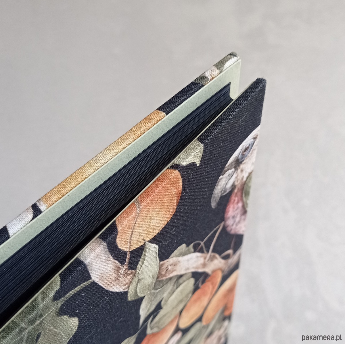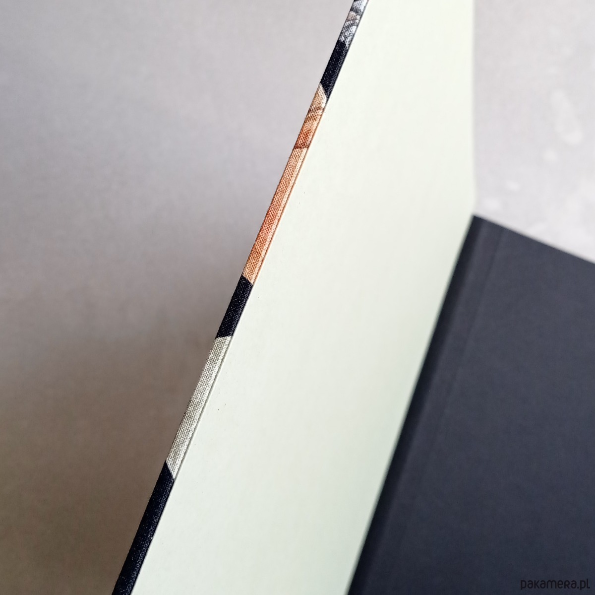 Wewnętrzna strona okładek wyklejona jest oliwkowym papierem Crush