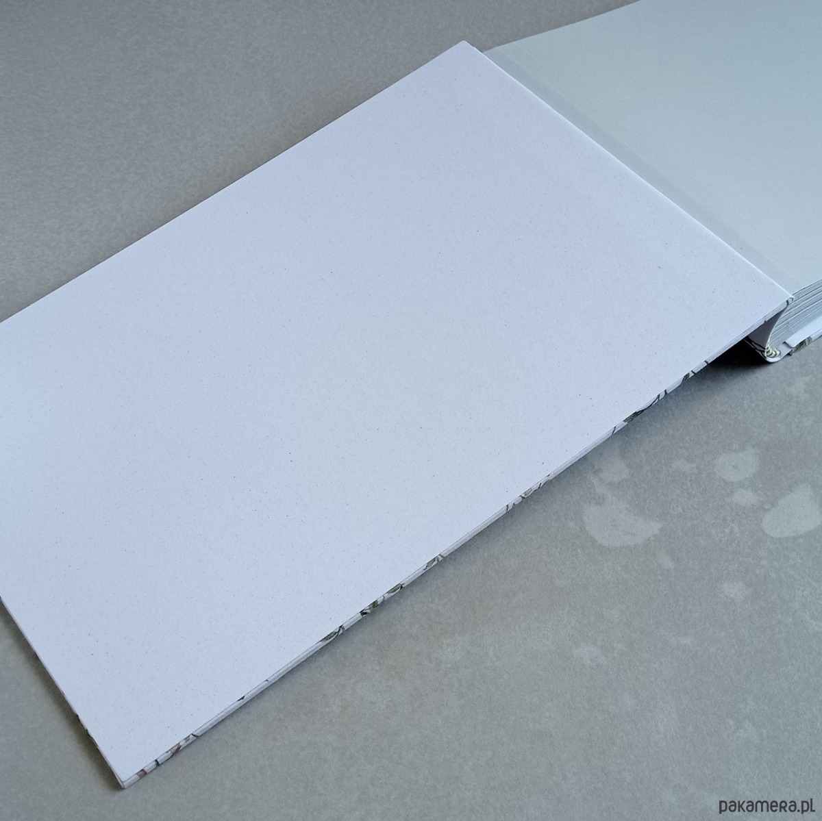 Album liczy 30 kart kremowego papieru Crush o gramaturze 250 g/m2