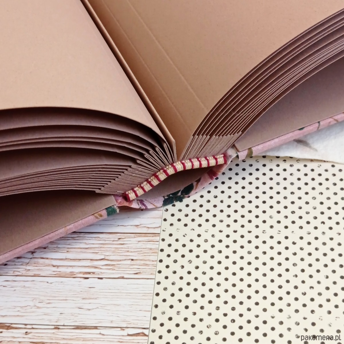 Album liczy 30 kart papieru Crush w kolorze migdałowym o gramaturze 250 g/m2