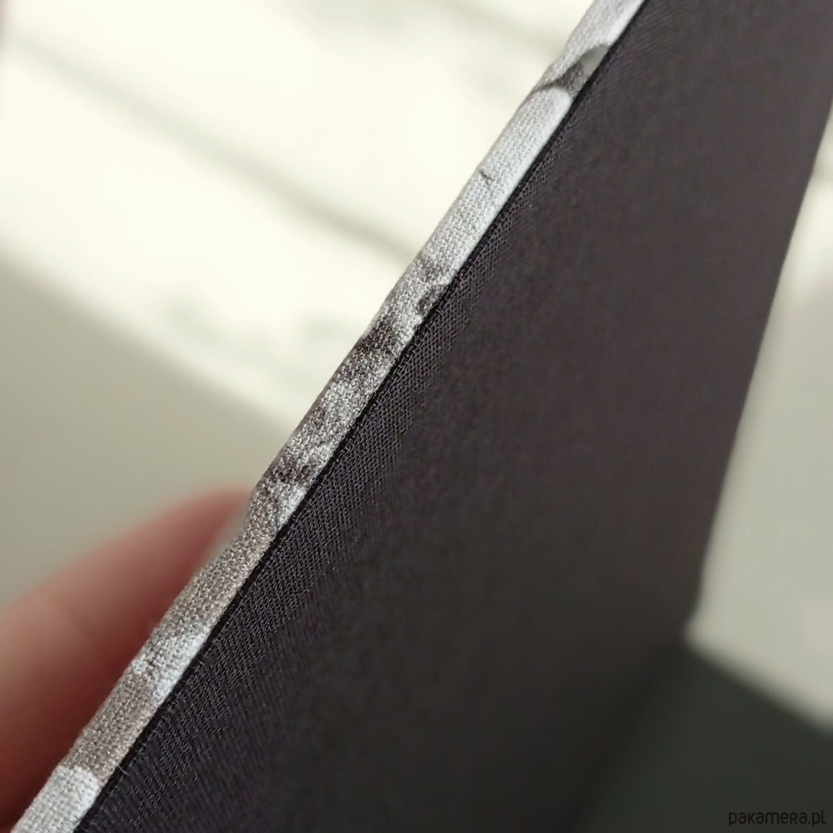 Wewnętrzna strona okładek wyklejona jest czarnym bawełnianym płótnem,