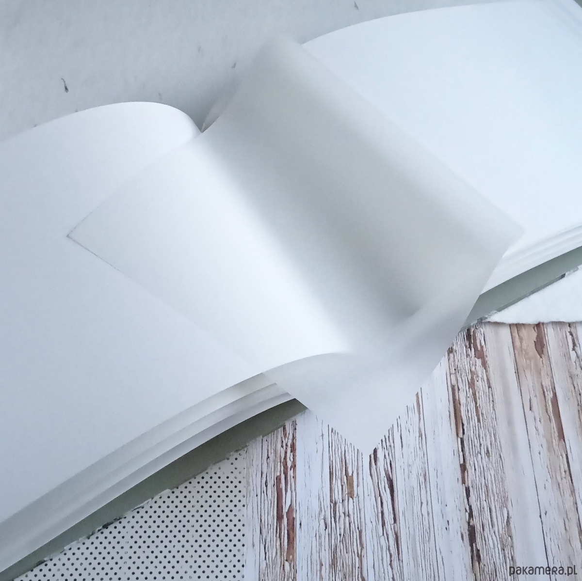 Album dostępny w wersji z przekładkami z papieru pergaminowego lub bez