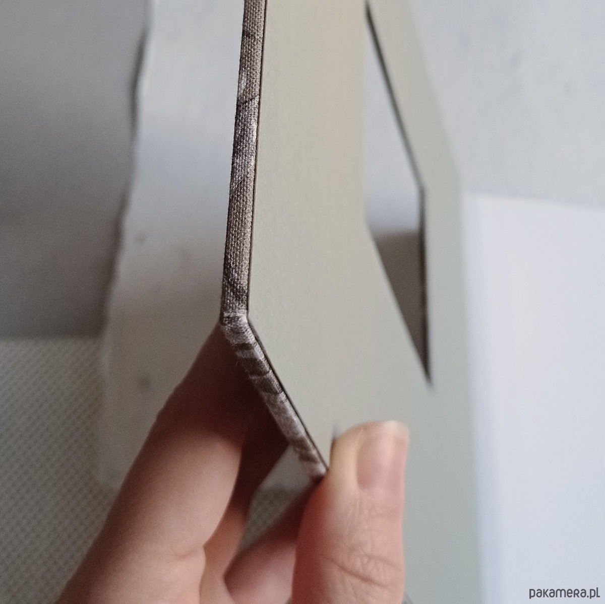 Album liczy 30 kart kremowego papieru Crush o gramaturze 250 g/m2. Karty są ręcznie szyte lnianą nicią