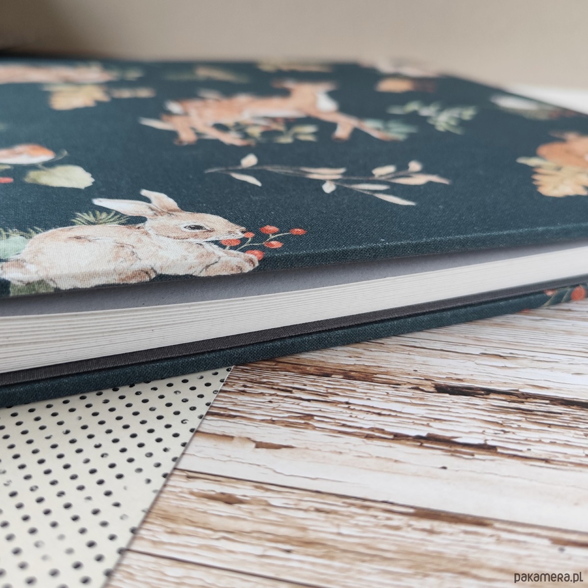 Album liczy 17 kart kremowego papieru Crush o gramaturze 250 g/m2