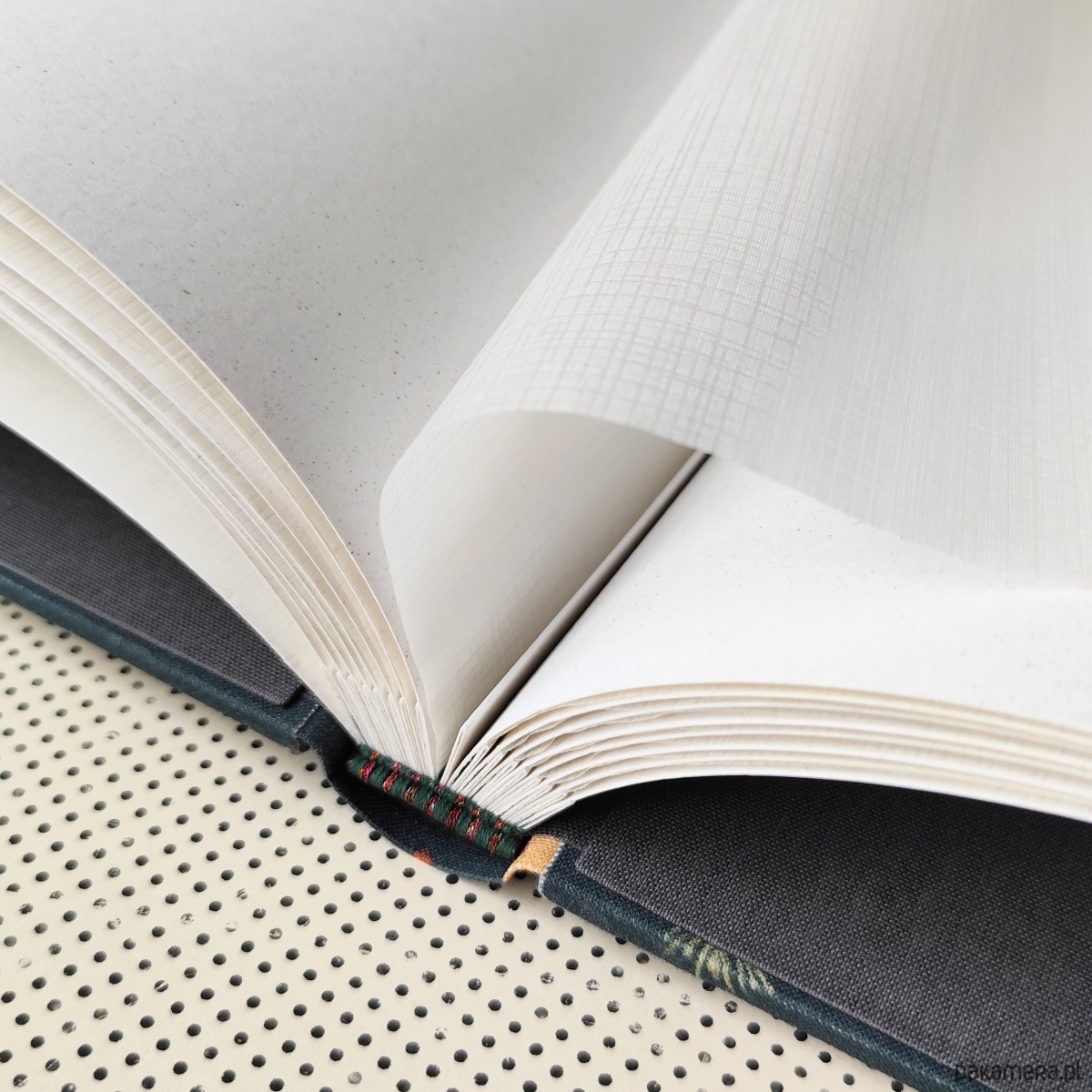 Wewnętrzna strona okładek wyklejona jest grafitowym płótnem,