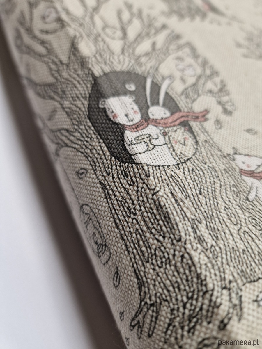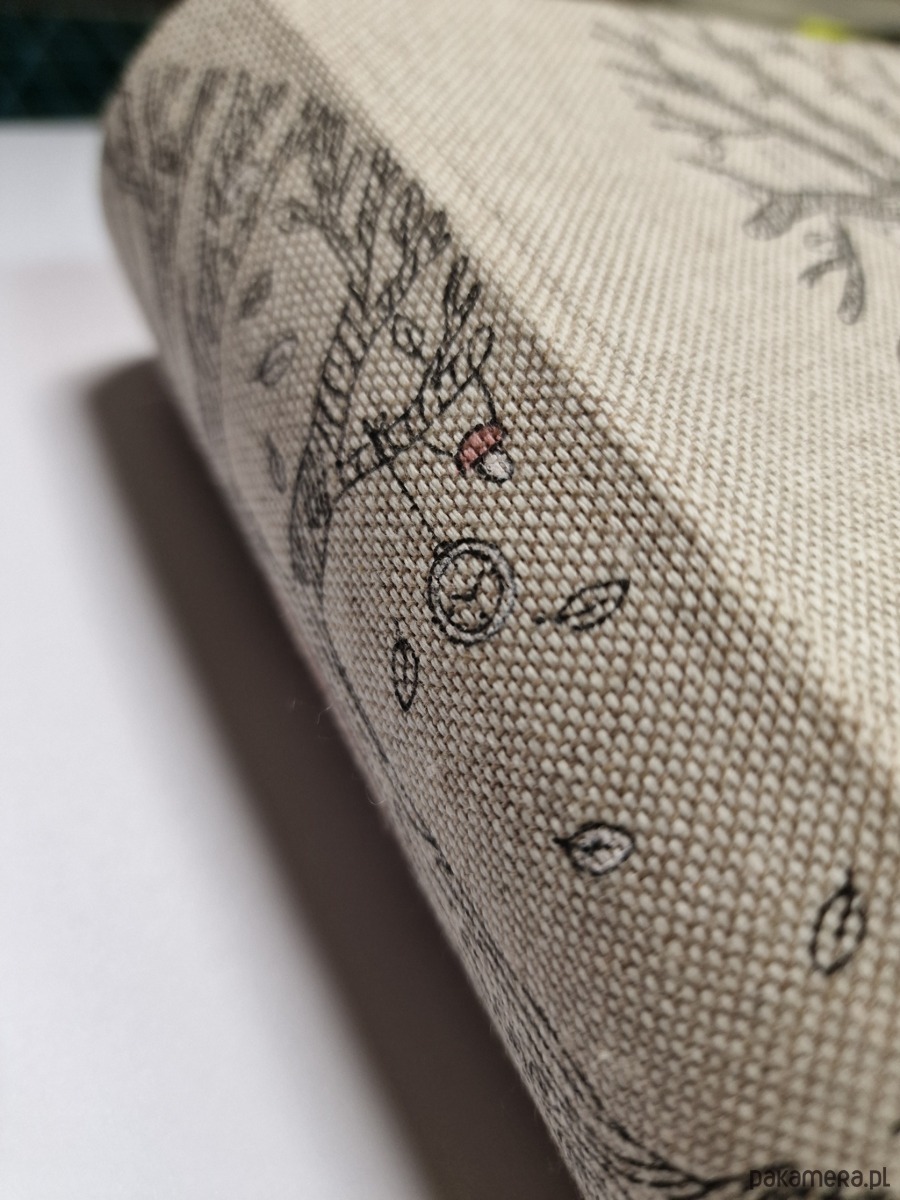 Okładka z ekskluzywnego lnu z Kopenhagi (format 32x32 cm) zachwyca subtelnym, konturowym wzorem drzew pełnych ukrytych twarzy, ptaków, domków i dekoracji – jak z baśniowej opowieści o lesie pełnym sekretów. Wnętrze kryje 100 czarnych, trwałych stron z przekładkami, które perfekcyjnie eksponują zdjęcia: rodzinne kadry, artystyczne ujęcia czy podróżnicze skarby zyskują tu głęboką, elegancką oprawę. Ten kwadratowy album to nie tylko miejsce na wspomnienia, ale artystyczna ozdoba domu – idealny prezent lub kronika dla tych, którzy cenią unikatowe rękodzieło introligatorskie. Wyjątkowy egzemplarz, gotowy zachwycać na lata!