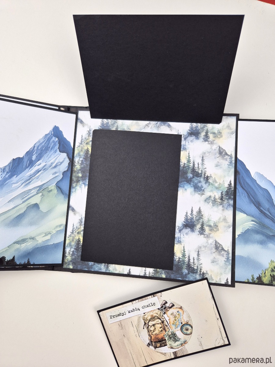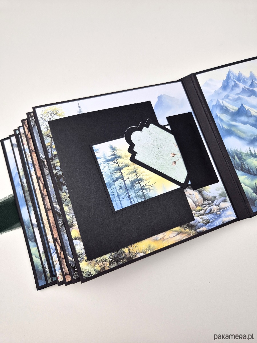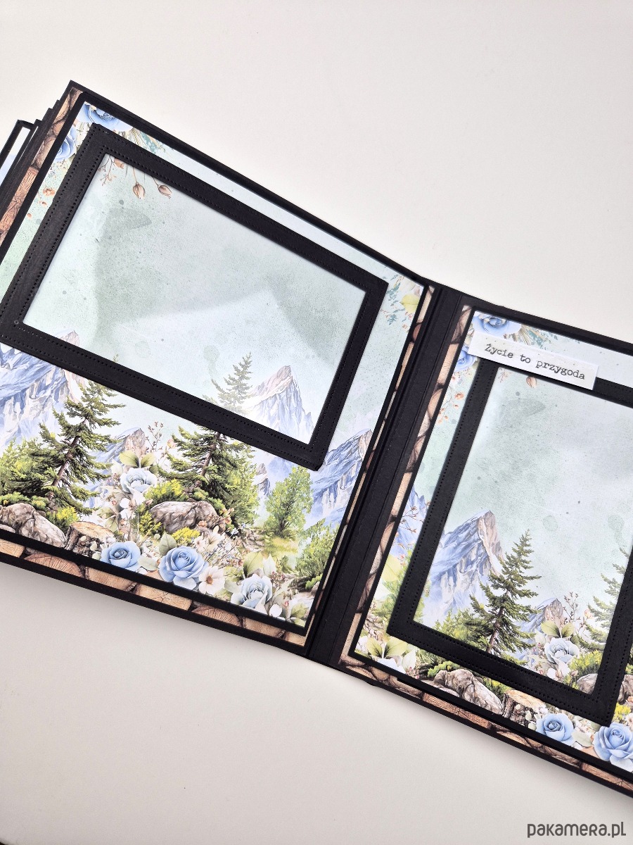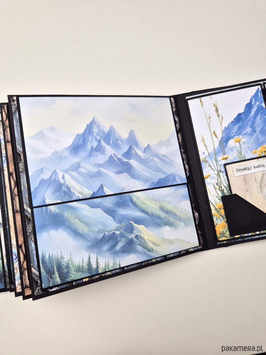 Okładka w naturalnym, górskim klimacie i czarne karty wewnątrz tworzą wyjątkową oprawę dla zdjęć. Czerń pięknie podkreśla kolory krajobrazów – błękit nieba, zieleń lasów, biel śniegu czy ciepłe barwy zachodu słońca.