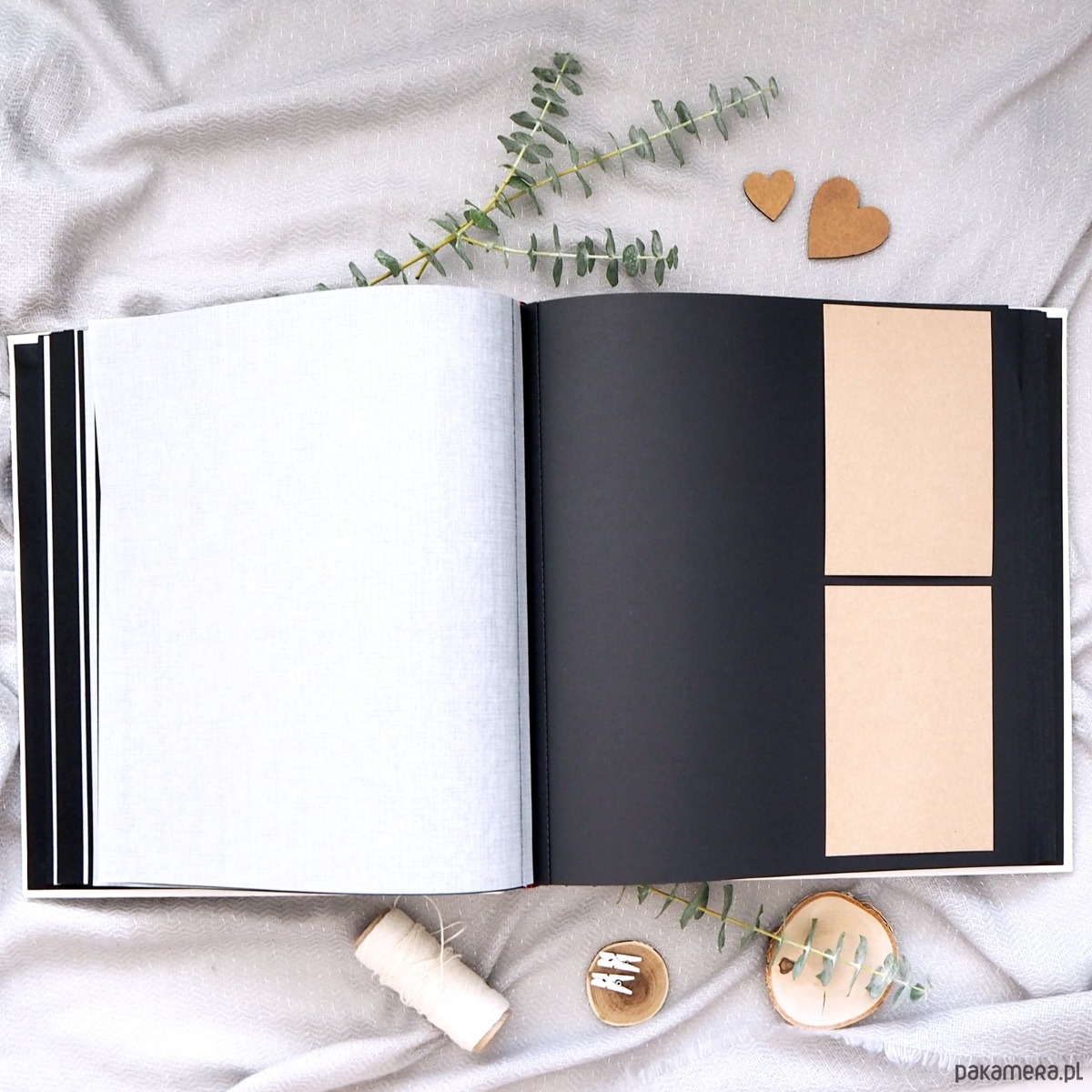 Album duży kwadratowy, o wymiarach :okładka 30×33, karty czarne, gładkie, kart 30/stron 60.
