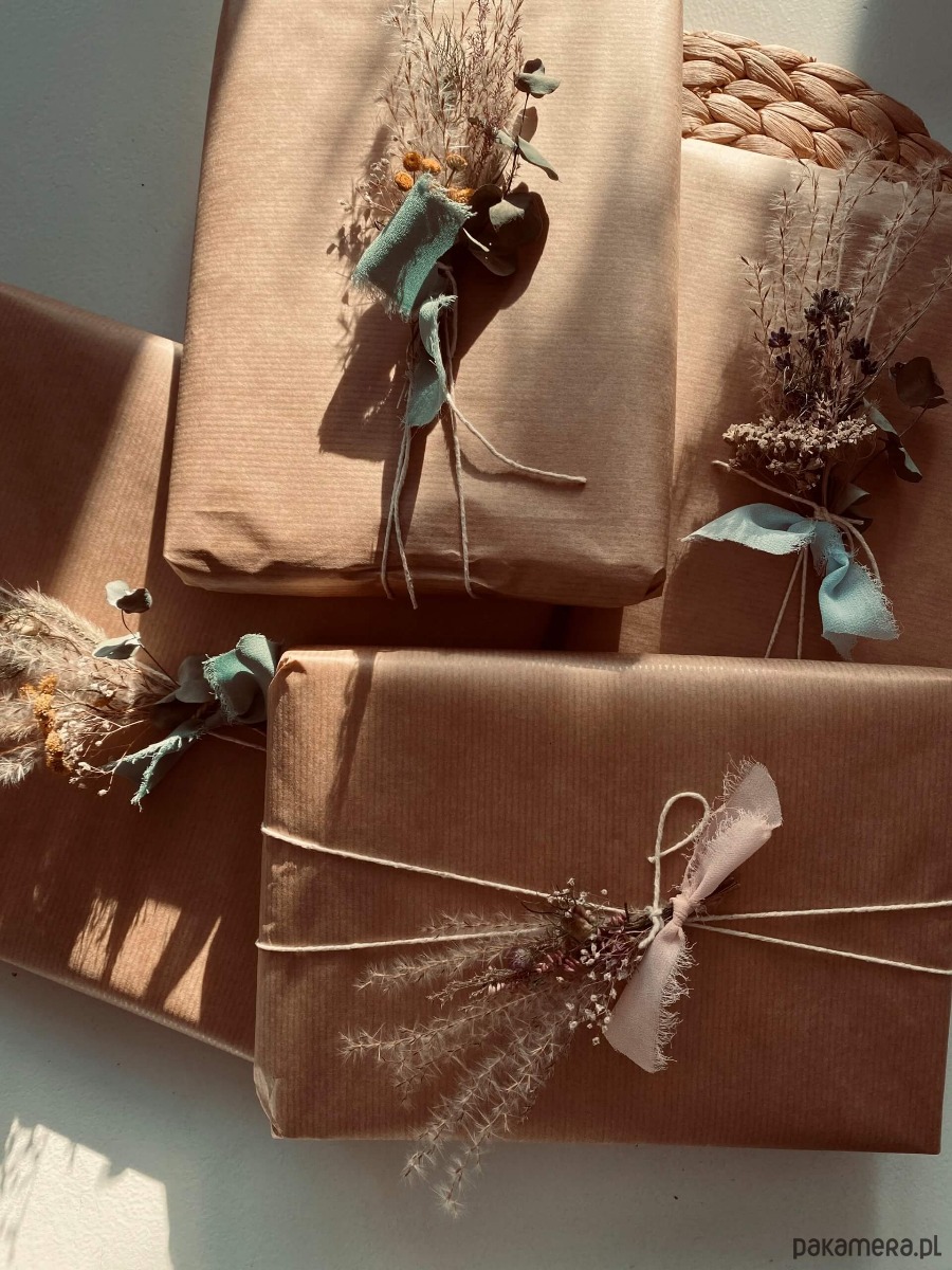 Albumy wysyłamy zapakowane w eko papier z kwiatową dekoracją.