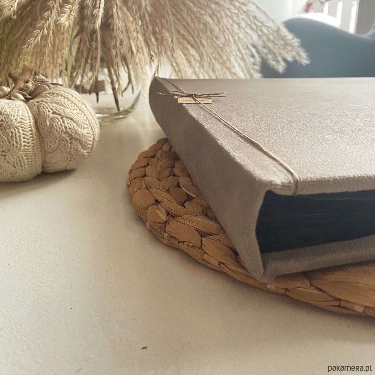 Tradycyjny album ręcznie oprawiony tkaniną welur -ciemny beż. Doskonały do przechowywanie wspomnień- zdjęć, pamiątek, pocztówek, biletów- wszystkiego co przywołuje pamięć o najpiękniejszych chwilach.