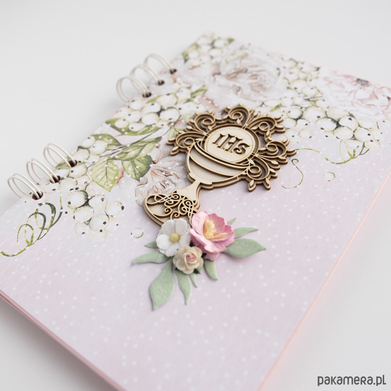 Ręcznie robiony album z okazji Pierwszej Komunii Świętej. Będzie idealnym prezentem na pamiątkowe zdjęcia czy wpisy z życzeniami gości dla dziecka.