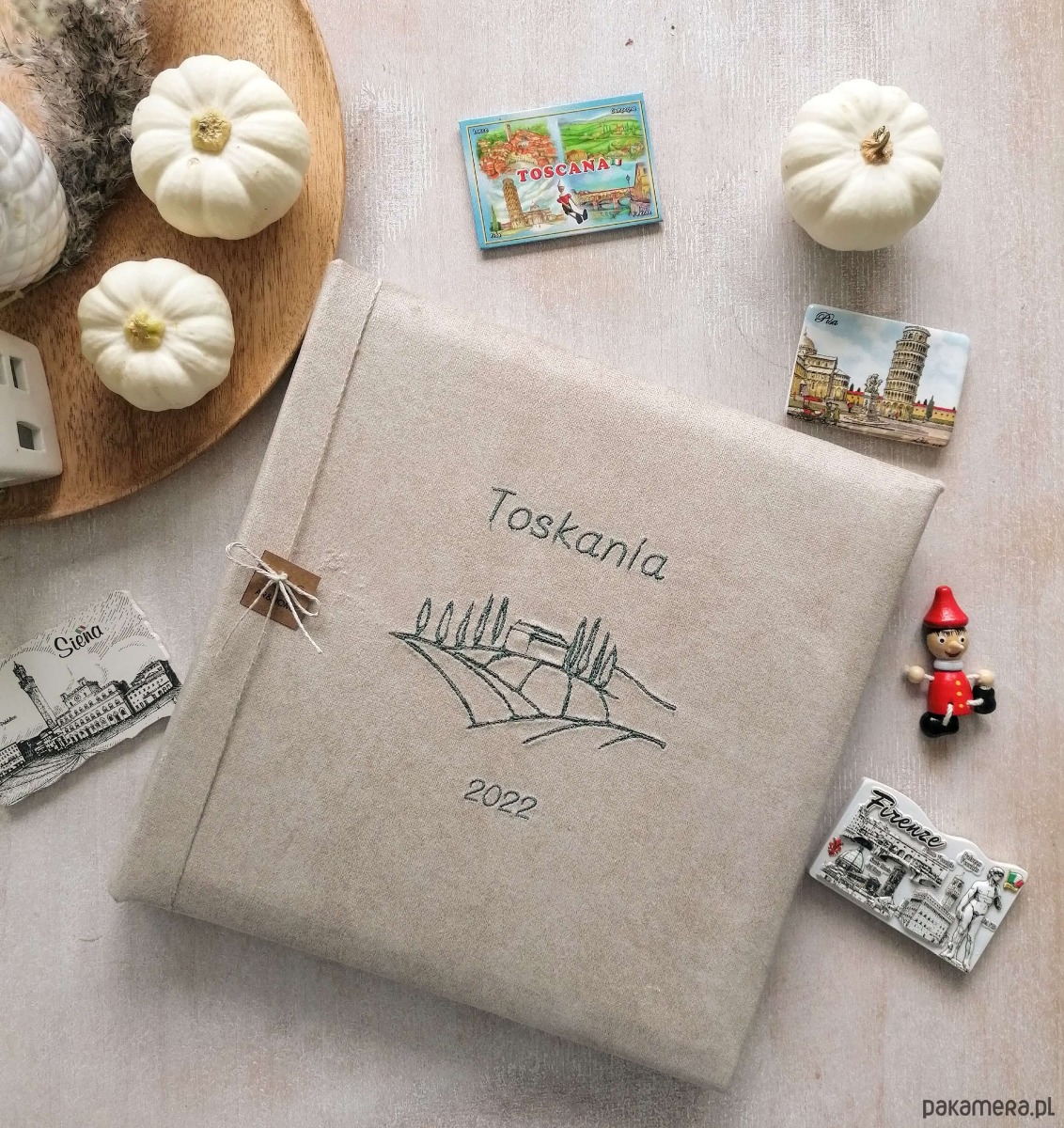 Tradycyjny album ręcznie oprawiony tkaniną z dekoracyjnym haftem. Doskonały do przechowywanie wspomnień- zdjęć, pamiątek, pocztówek, biletów- wszystkiego co przywołuje pamięć o najpiękniejszych chwilach.