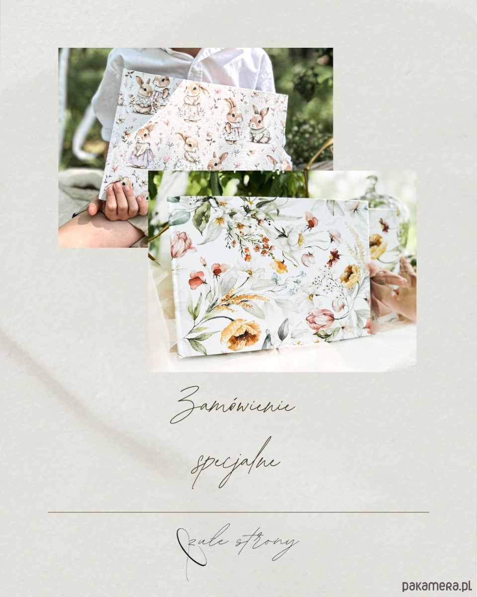 Album w pastelowych kolorach z motywem króliczków - z pergaminem i personalizacją