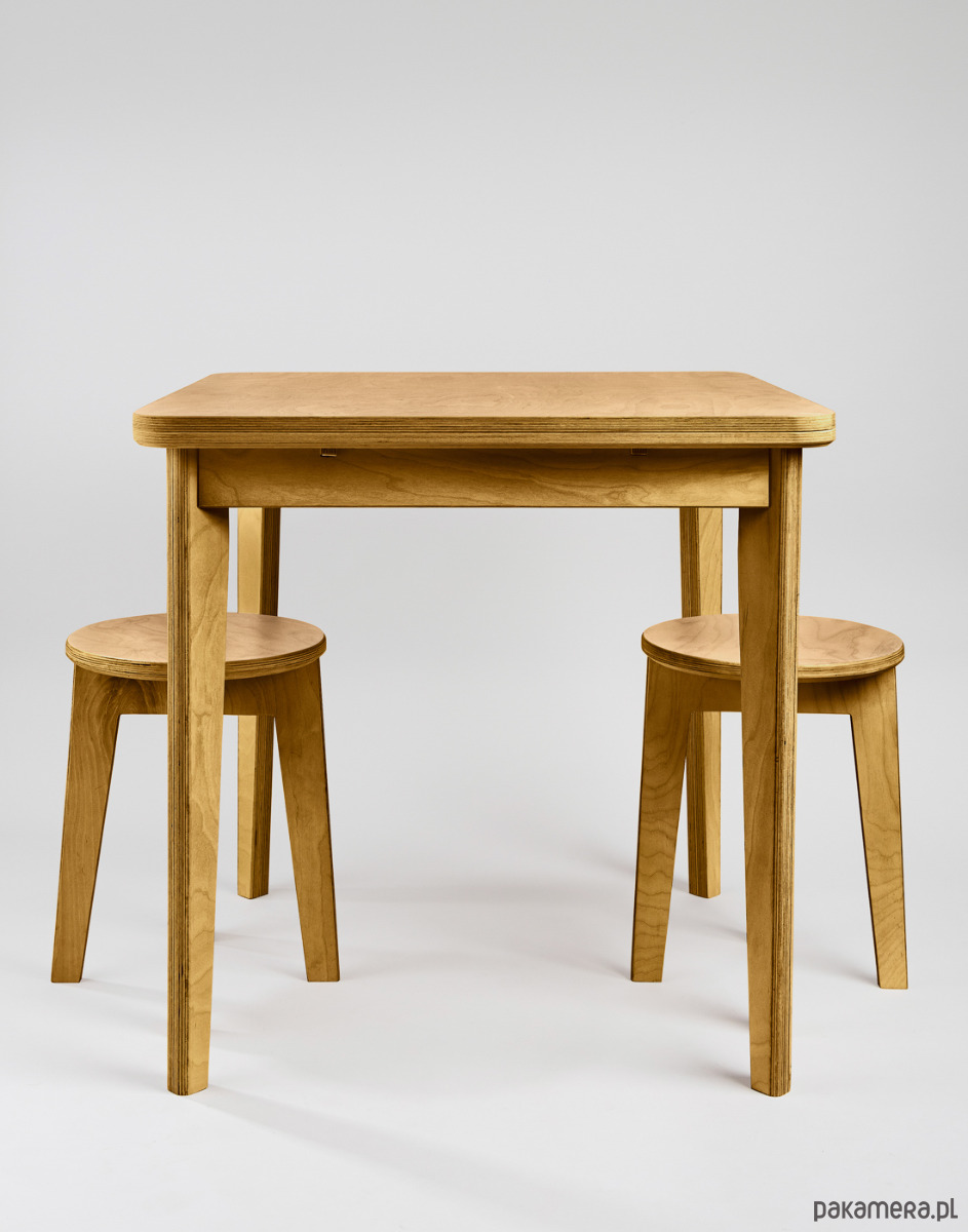 Ales to zgrabny stół jadalniany zbudowany w całości ze sklejki brzozowej. Rozkładany blat wersji Duo może zaskoczyć swoimi możliwościami.