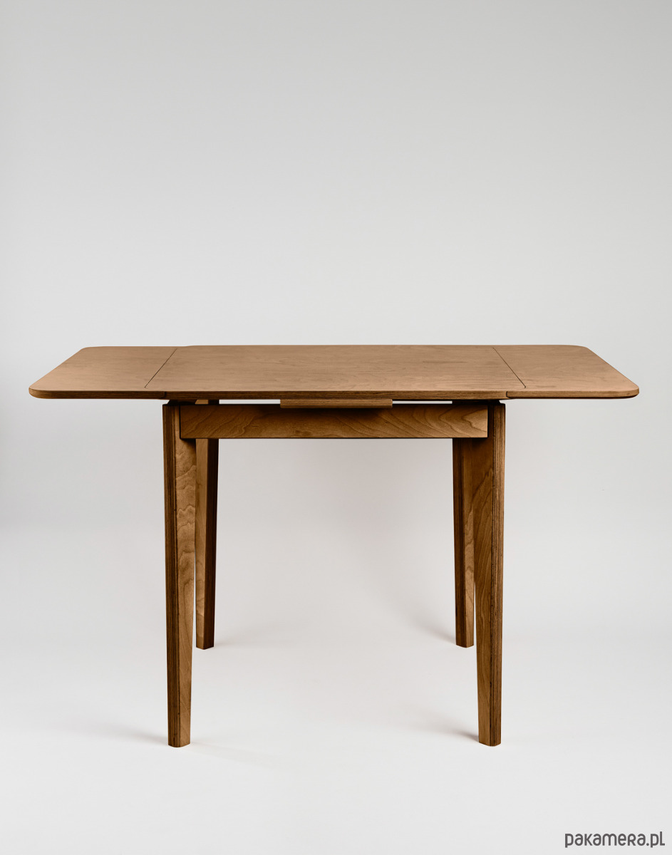 Blat: wykonany jest z jednego arkusza sklejki, czyli po rozłożeniu cała powierzchnia tworzy ciągły rysunek. Mechanizm rozkładania to rękodzieło, również ze sklejki. Wymaga odrobiny uwagi, wynagradza możliwością rozłożenia każdej strony niezależnie. Po rozłożeniu blat sprawia wrażenie jakby lewitował nad ramą.