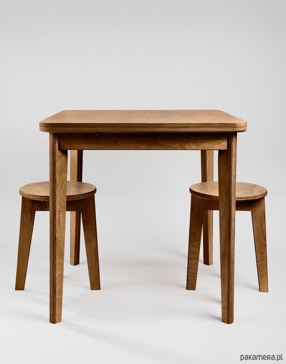 Ales to zgrabny stół jadalniany zbudowany w całości ze sklejki brzozowej. Rozkładany blat wersji Duo może zaskoczyć swoimi możliwościami.