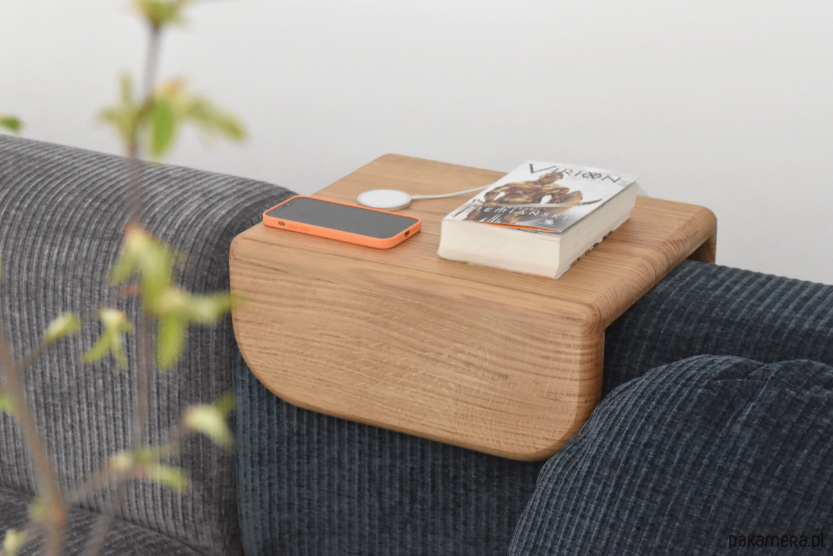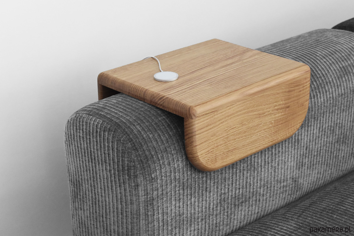 Nakładka została wykonana z litego drewna dębowego dzięki czemu idealnie pasuje do drewnianej podstawy sofy. Jest zarazem stabilna i ma zaokrąglone krawędzie co czyni ją bezpieczną w użytkowaniu.