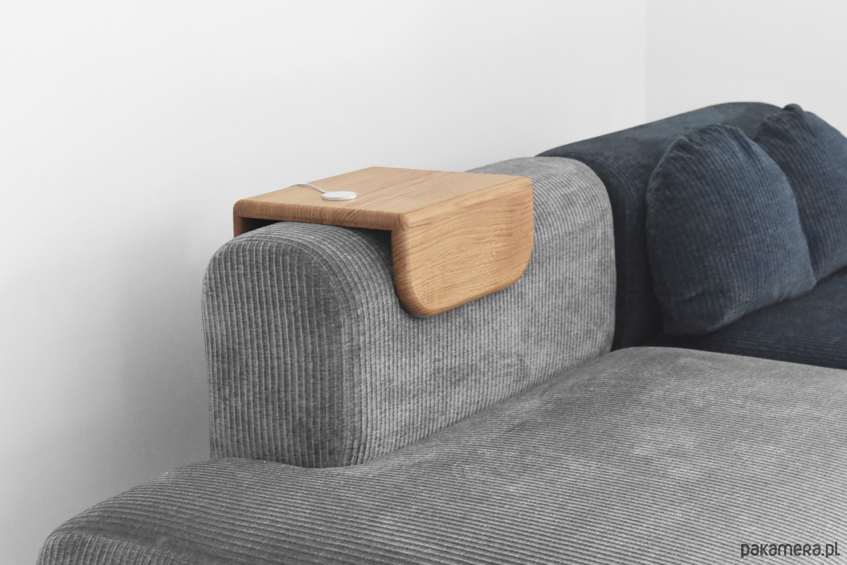 Jeśli cenisz sobie praktyczne rozwiązania to ta podkładka na pewno wpadnie Ci w oko. Dzięki niej sofa modułowa Aliko jest jeszcze bardziej funkcjonalna. Twój telefon, laptop czy książka będą zawsze pod ręką, już nie wpadną za poduszki. Nie będziesz już sięgać do stolika by odstawić herbatę lub kieliszek, wszystko po to by maksymalnie zresetować ciało i umysł podczas odpoczynku na sofie.