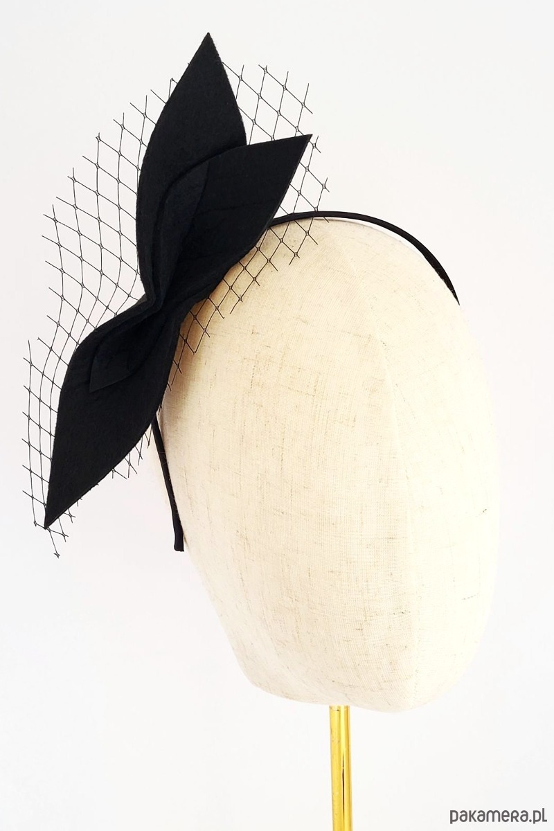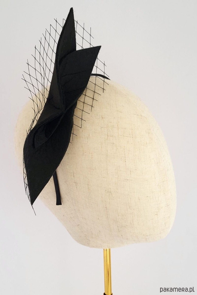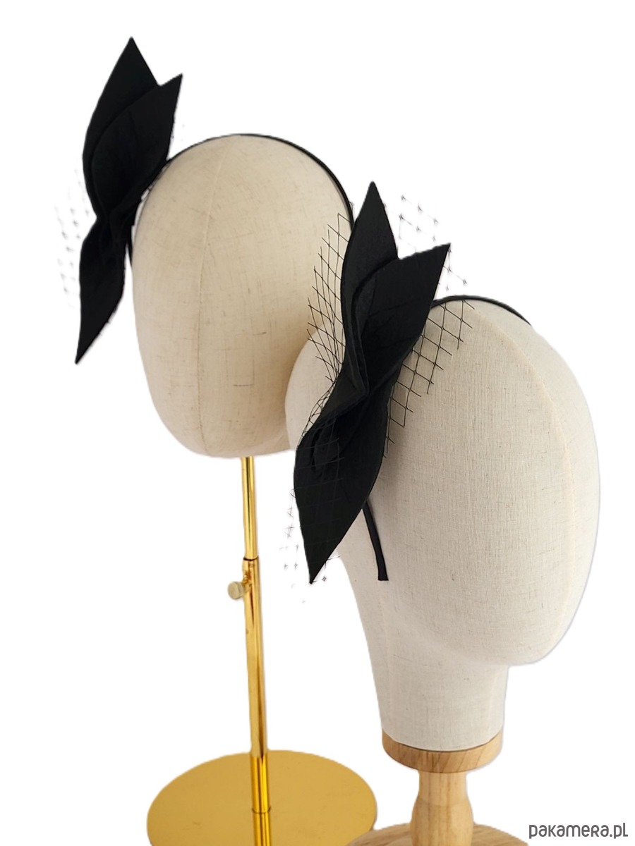 Ozdoba z Filcu: Centralny punkt stanowi elegancka, ręcznie formowana ozdoba z wysokiej jakości filcu w kolorze klasycznej czerni. Jej geometryczna, dynamiczna forma w kształcie stylizowanych liści lub płatków dodaje opasce wyrazistości i nowoczesnego sznytu. Rozmiar około 16cm x 4cm.